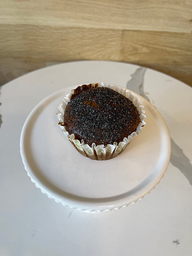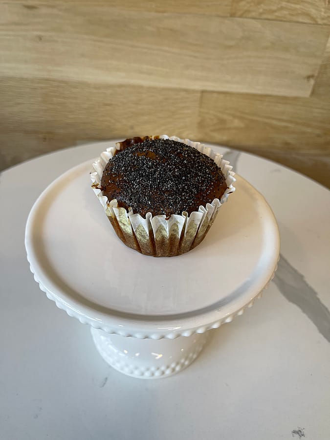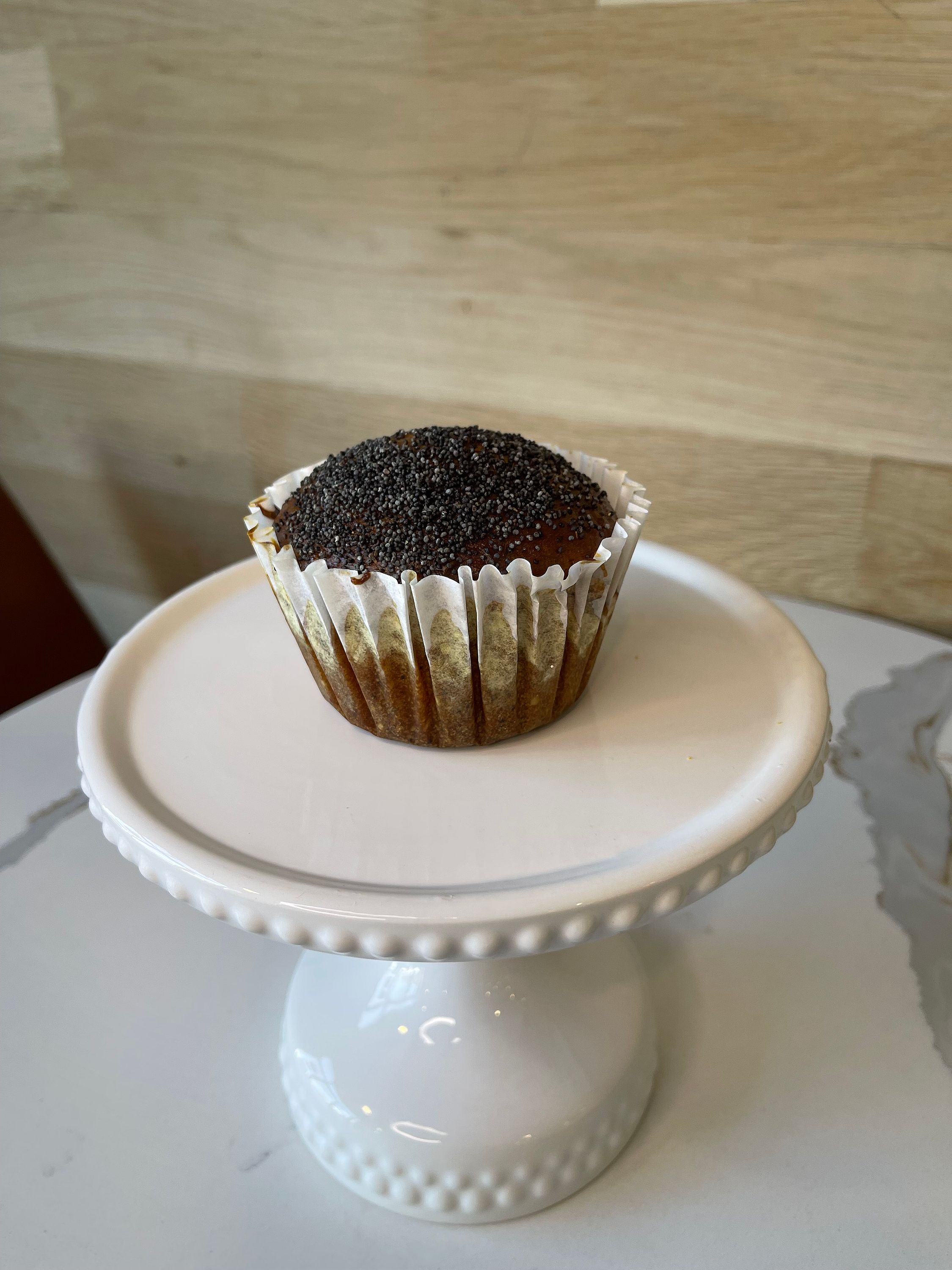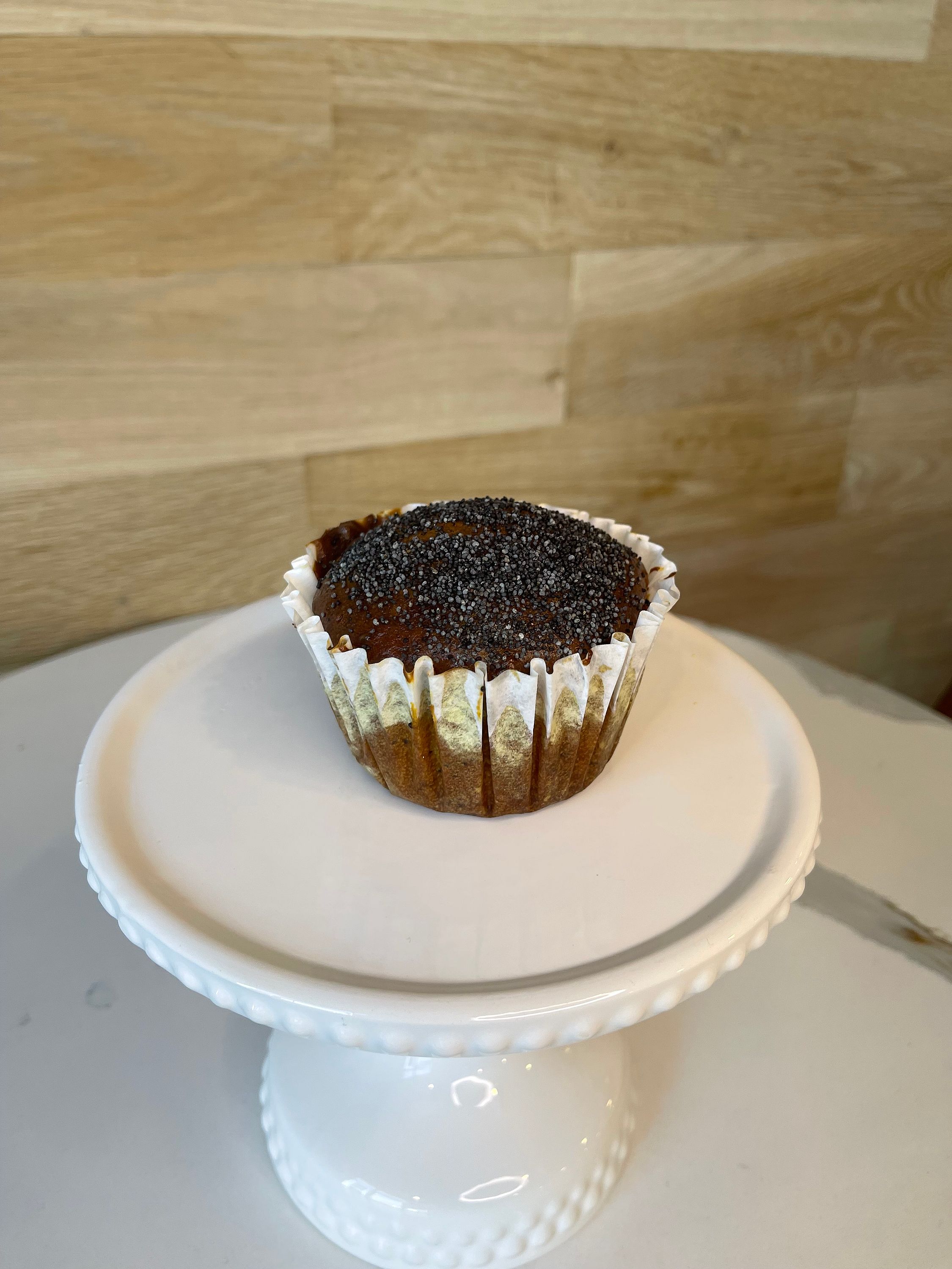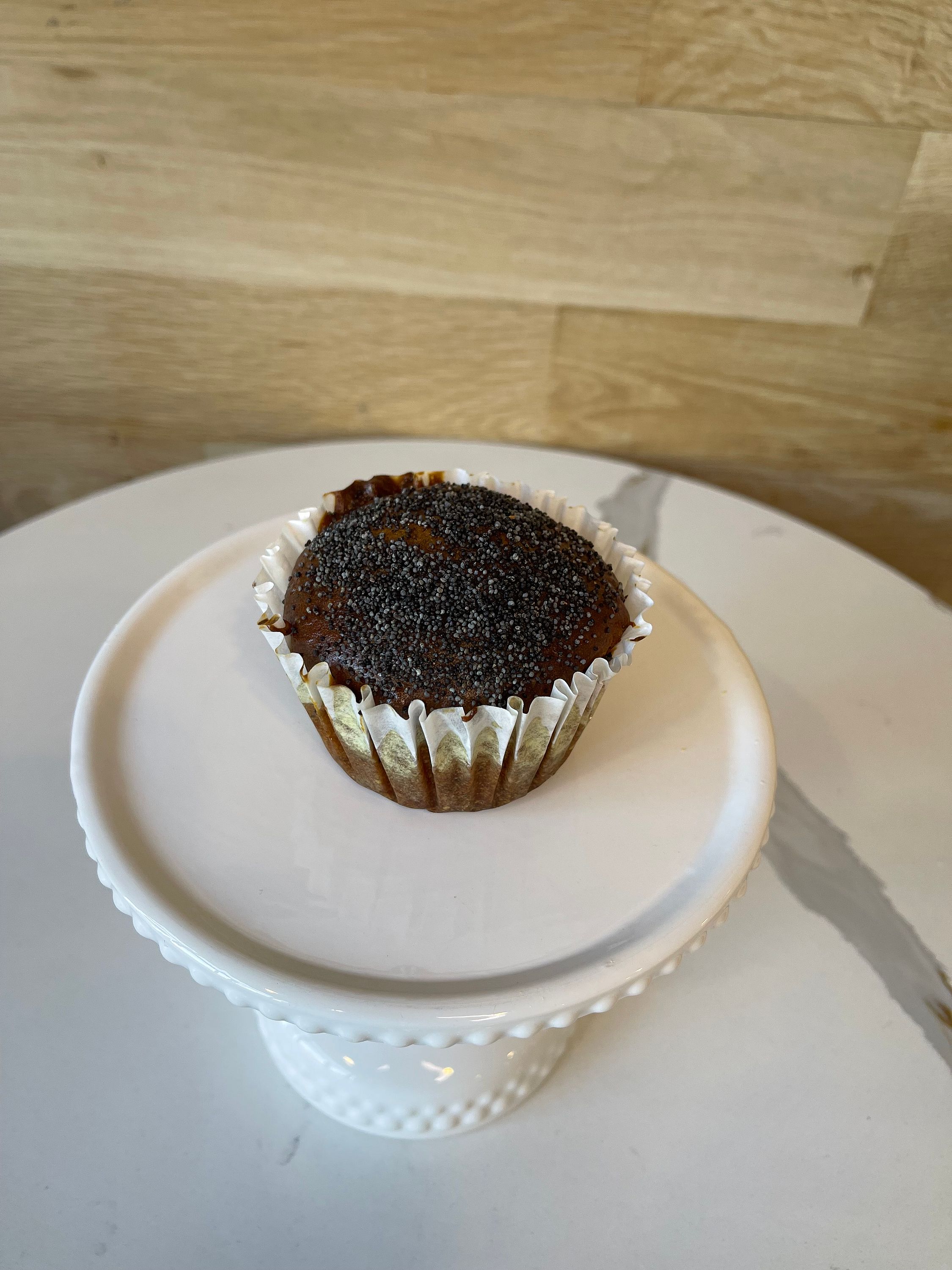 A fresh-baked muffin featuring zesty lemon and the subtle crunch of poppy seeds. Dairy Free
