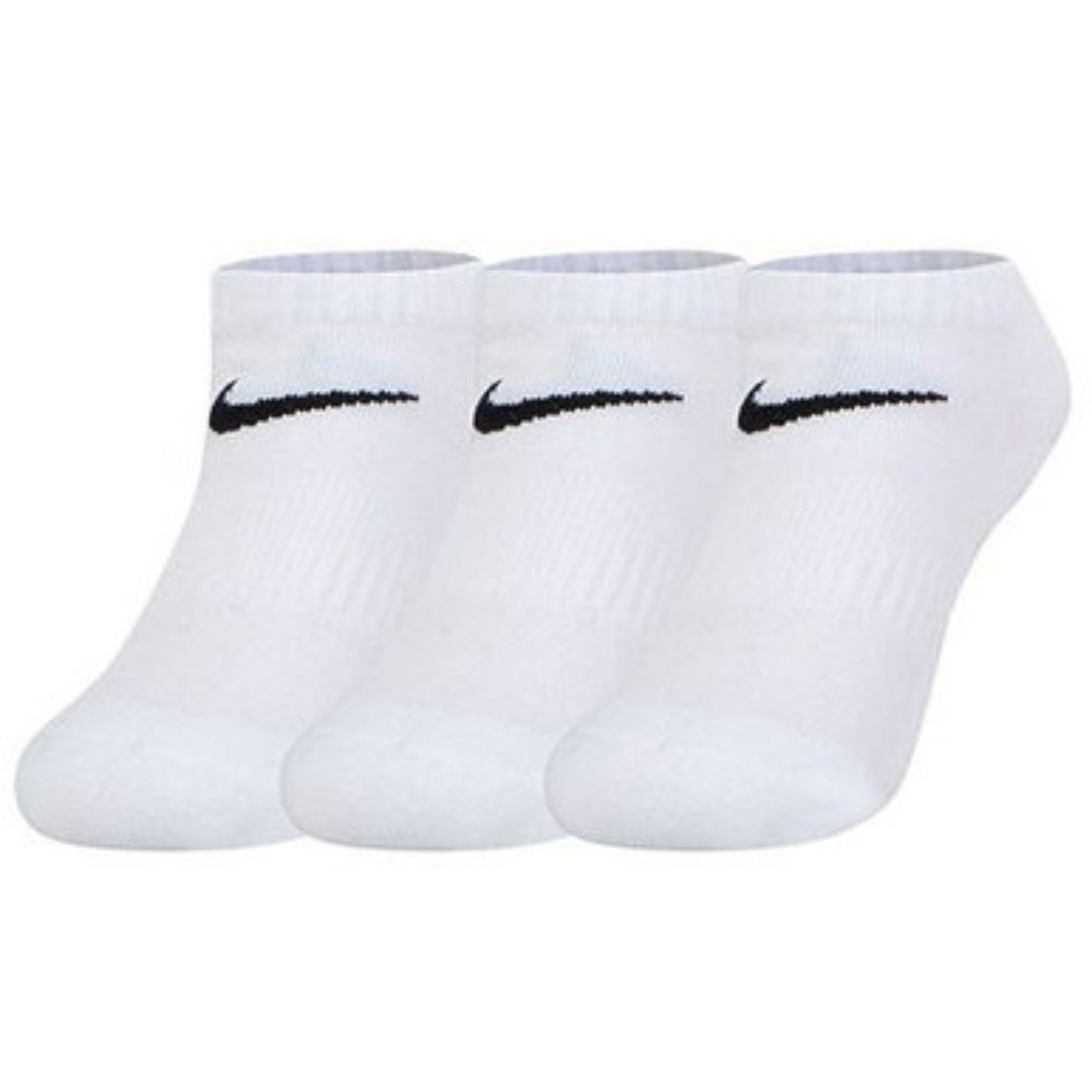 Socks from Nike Good Nike socks sold in a 3-Pack in white with a black Nike logo on the ankle. The Nike socks are an ankle sock model with a very card rib shaft and a ribbed edge around the foot that holds the socks in place. The Socks are padded under the foot. The Socks are with DRI-FIT technology, which supports the body's natural cooling system, and transports the sweat away and distributes it on the surface of the material so that it evaporates faster.