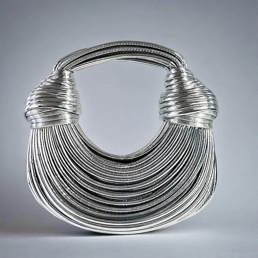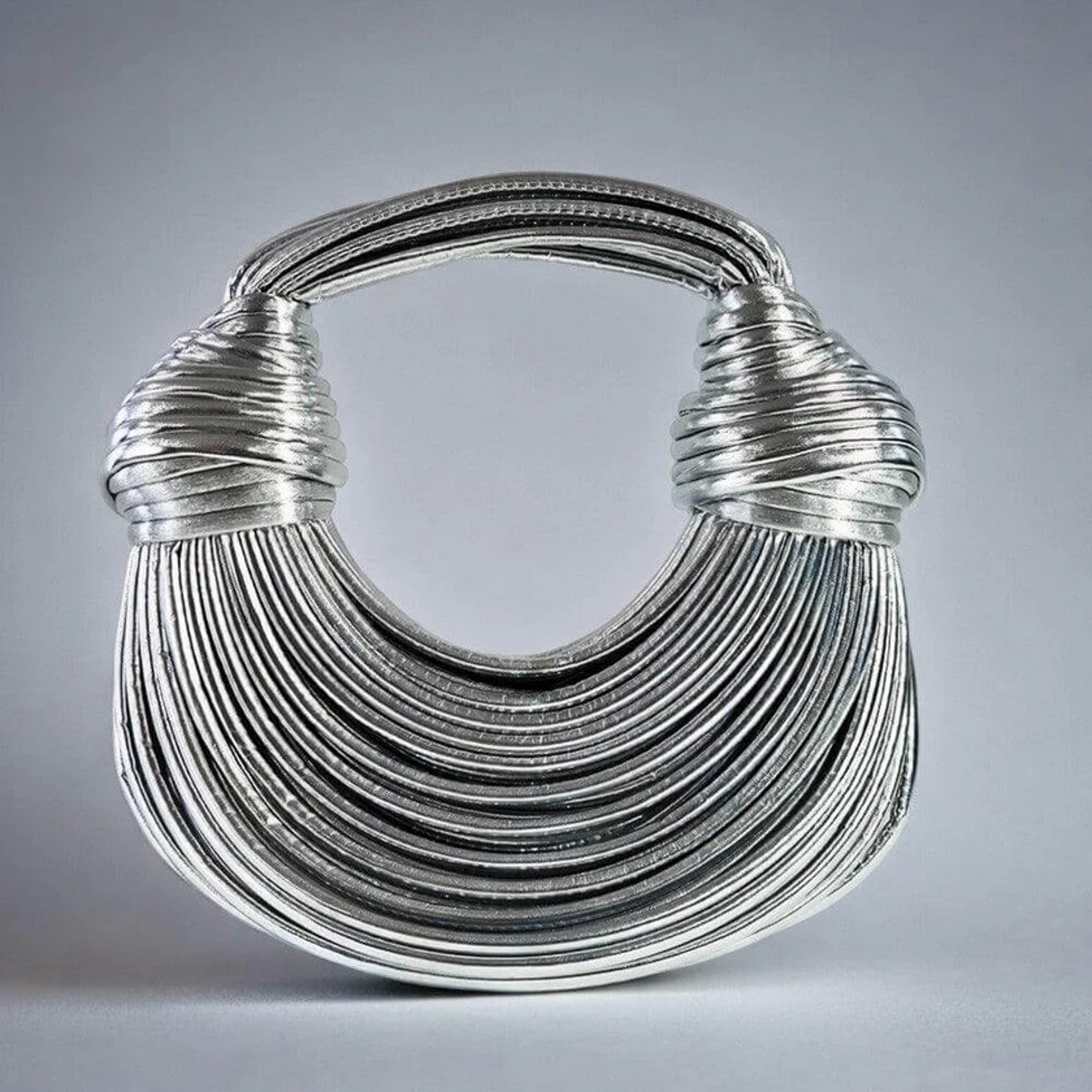 Elevate your style with the captivating Metallic Noodle Handbag. Hand-woven with a stunning metallic finish, this unique bag adds instant glamour to any outfit.