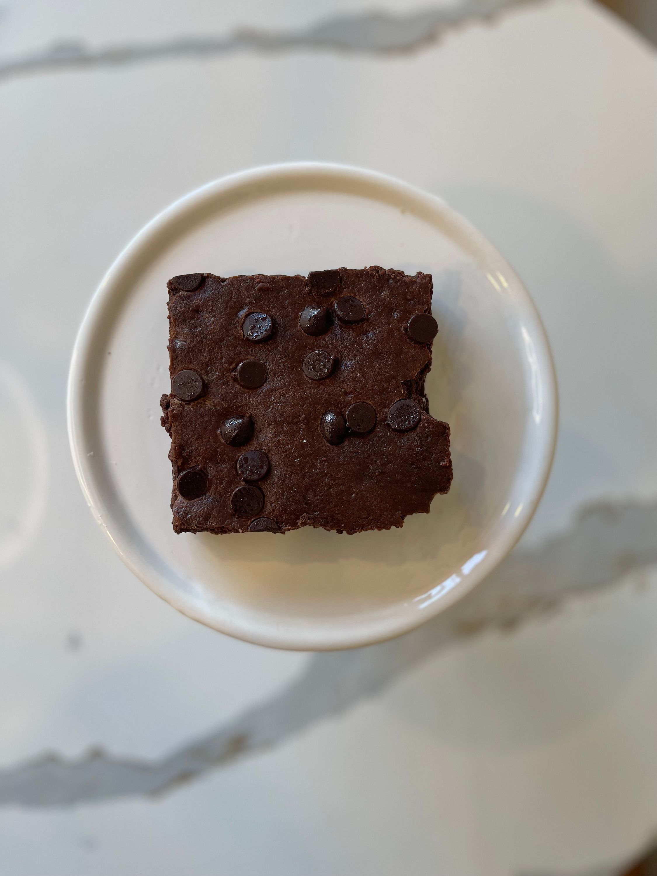 Plain Chocolate Brownie with chocolate chips baked inside. Dairy Free