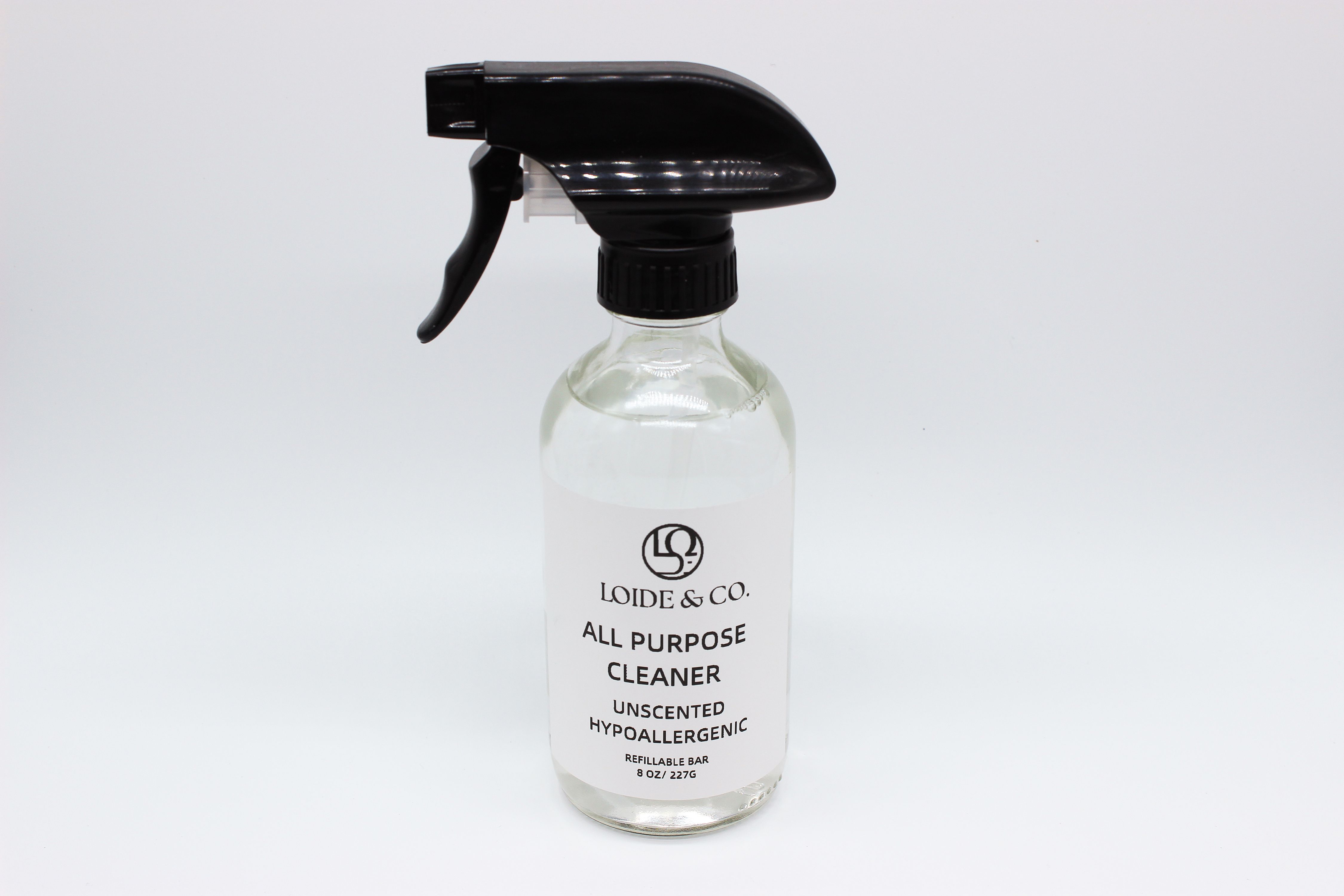 The only cleaner you need. Loide & Co.’s Unscented All-Purpose Cleaner is a gentle yet effective solution for everyday cleaning throughout your home. Safe for skin and countertops, this hypoallergenic formula tackles daily messes without harsh chemicals or added fragrance.