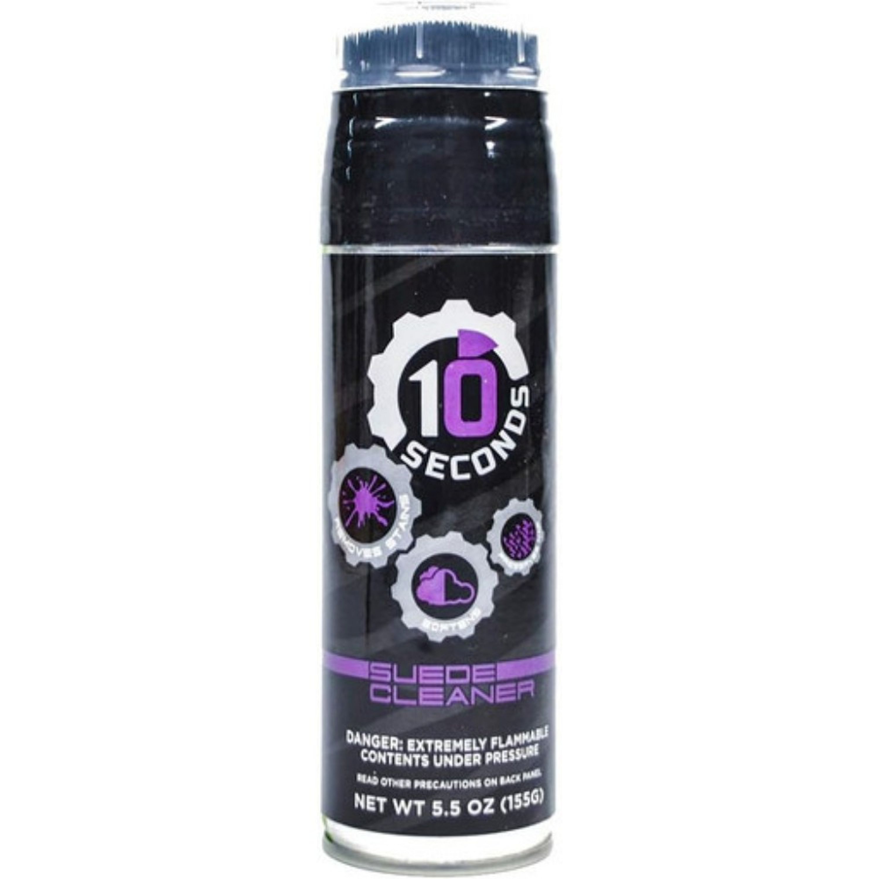 10 Seconds Suede Cleaner cleans the toughest stains on both suede and nubuck. The fast-drying formula goes on quick and even. Use the top scrub brush to remove deep set in dirt.
