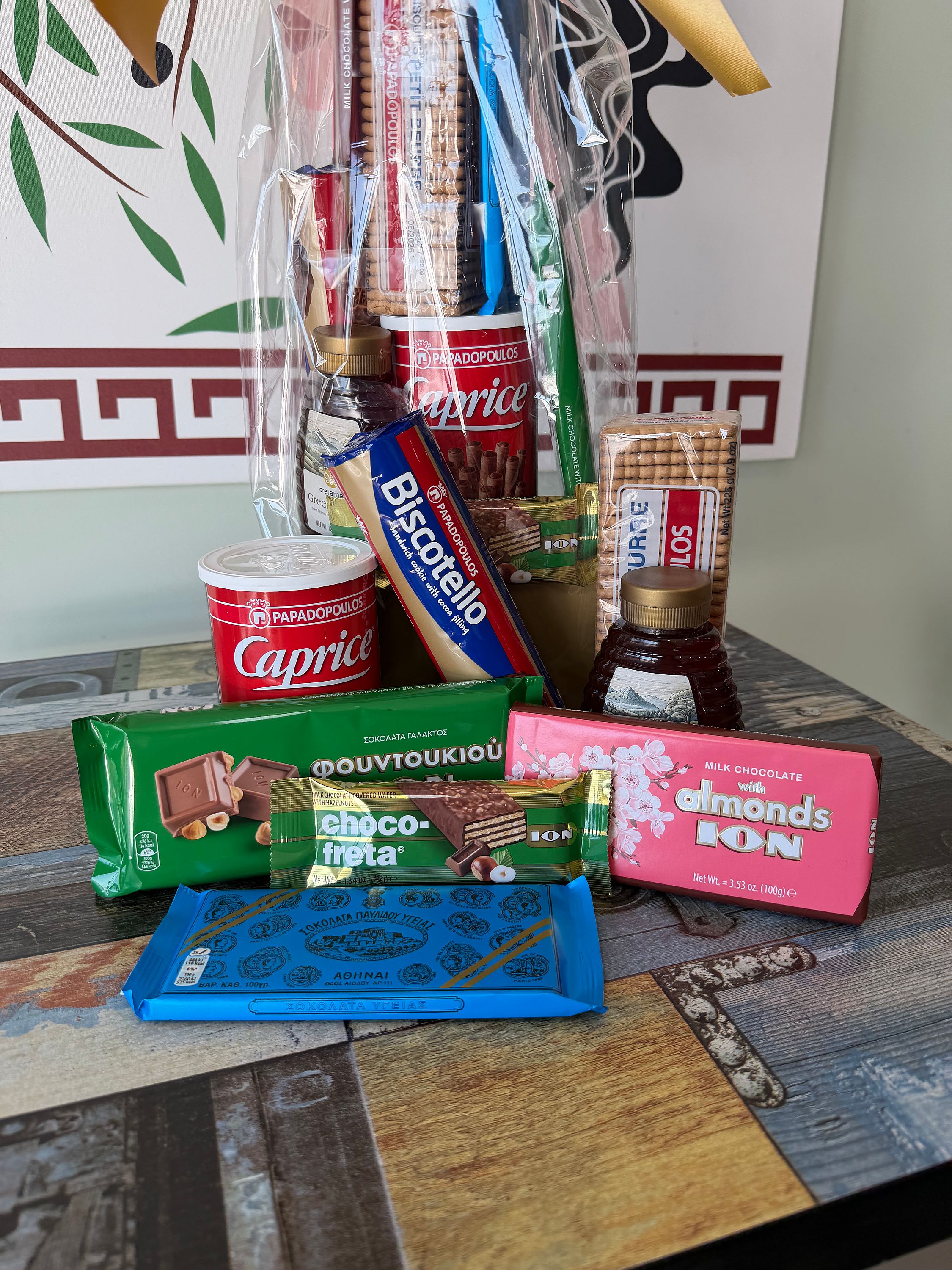 Thoughtfully arranged and full of traditional flavors, this basket is ideal for holidays, thank-yous, housewarmings, or anyone who appreciates gourmet international treats. A delightful way to celebrate Greek culture and sweetness in one elegant gift.