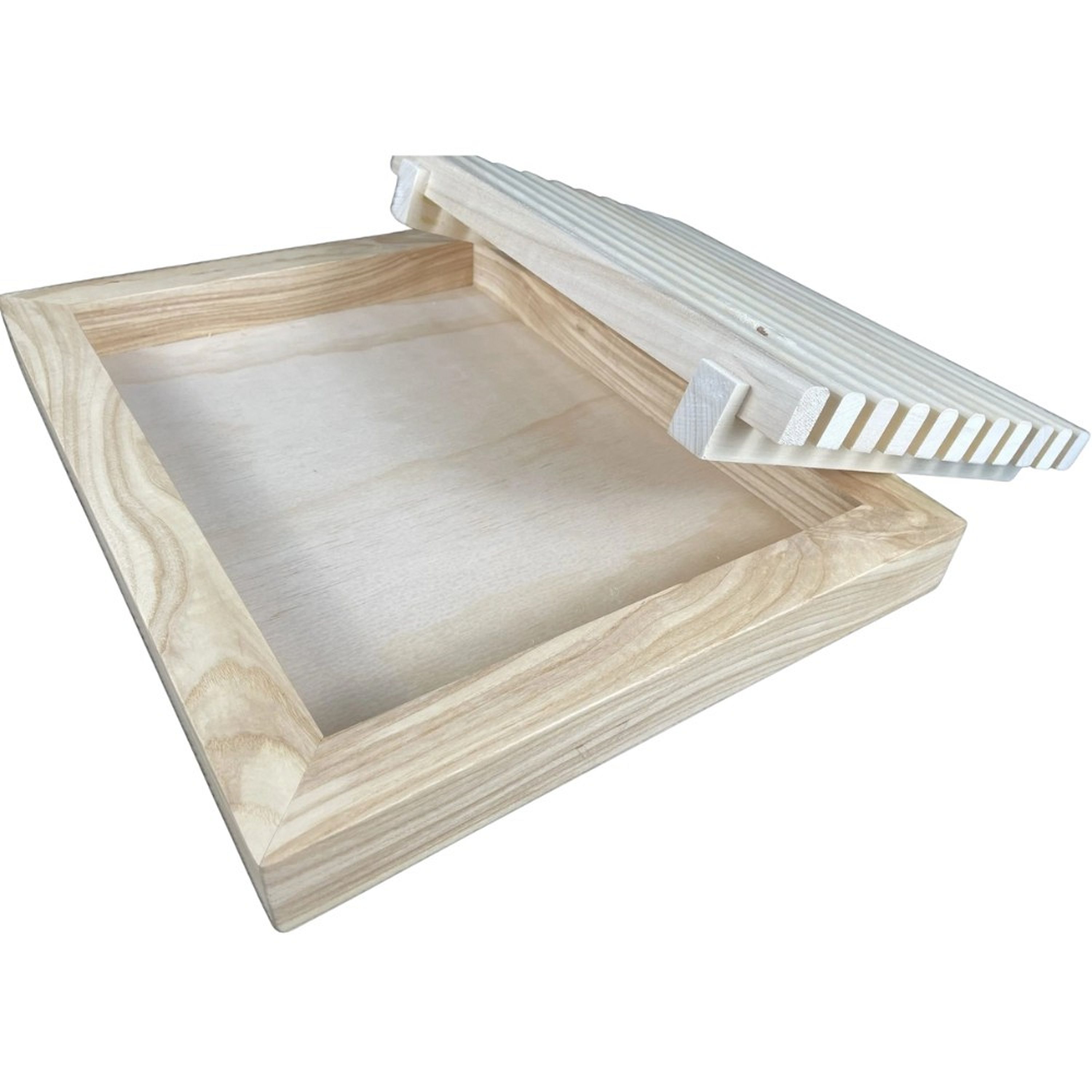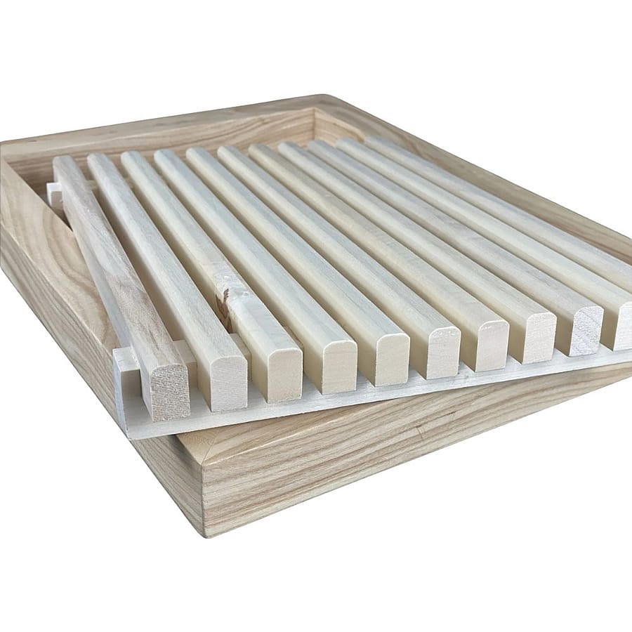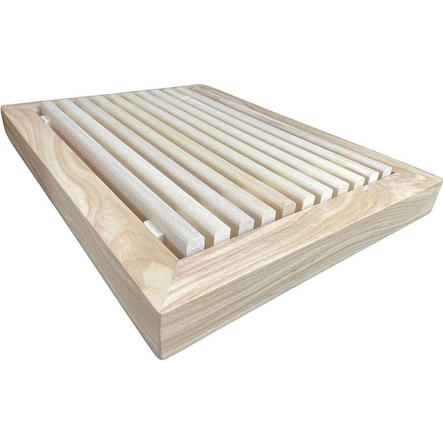 This crumb catching bread cutting board saves you from the mess of crumbs scattering everywhere that occurs while using a normal cutting board. With the ease of a removable grate that allows you to simply discard the crumbs it saves you the headache of having crumbs all over your countertop or dining table while breaking bread with family and friends. We offer matching wood bread cutting knives that can match your bread cutting board which is often from the same cut of wood, or you can mix and match a different wood style to your liking.