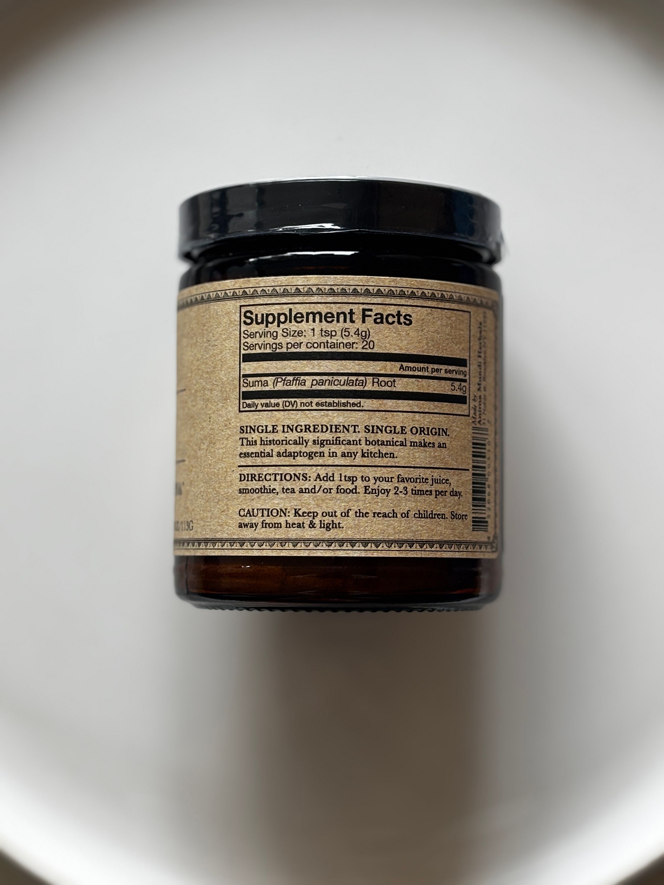 In both folk and modern herbal practices, Suma is considered an adaptogenic plant that supports overall well-being, stamina, and resilience.* Its earthy, grounding nature makes it a fitting addition to wellness rituals that seek strength, energy, and sustained nourishment.*