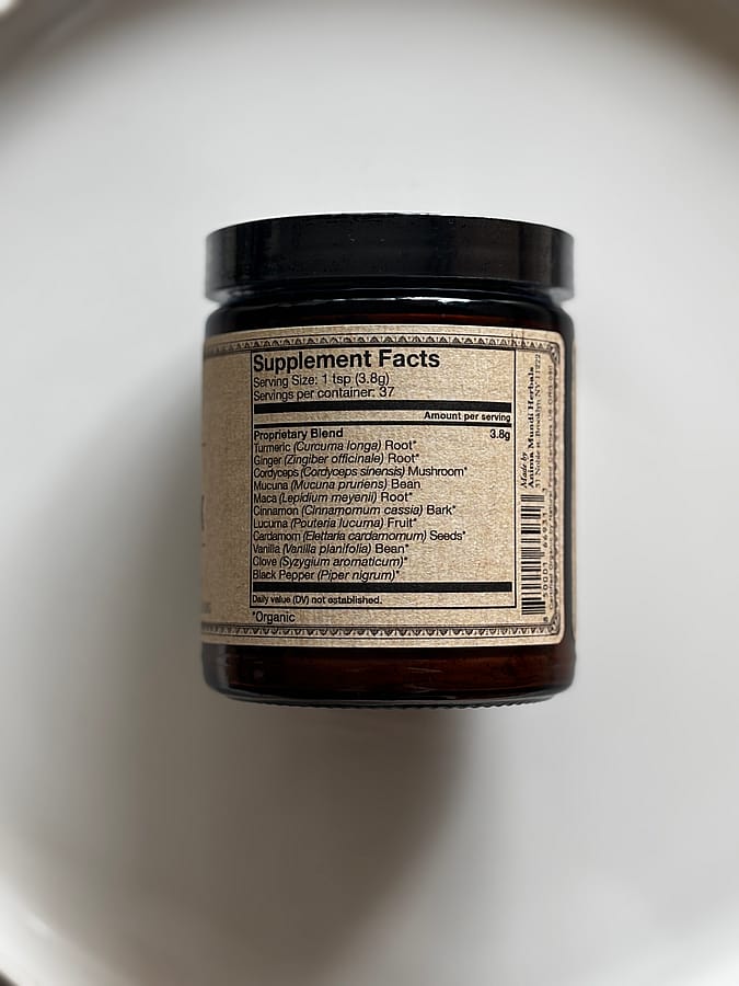 Our Golden Sun Milk features activating botanicals like Maca and Cordyceps, adaptogenic herbs traditionally used to support energy and stamina.* It also includes Mucuna, known in herbalism as the “dopamine bean,” valued for its role in promoting a lifted spirit and sense of joy.* Blended with organic chai spices including Cinnamon, Cardamom, Black Pepper, and Vanilla, this formula offers a delicious, grounding ritual to begin your day with clarity and strength.*