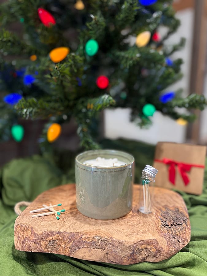 Celebrate these cool winter months and keep warm with the perfect 9oz soy wax candle topped with a winter wonderland snowflake(s). Each ceramic candle jar comes boxed up with a bow and a color-matching mini match jar inside!