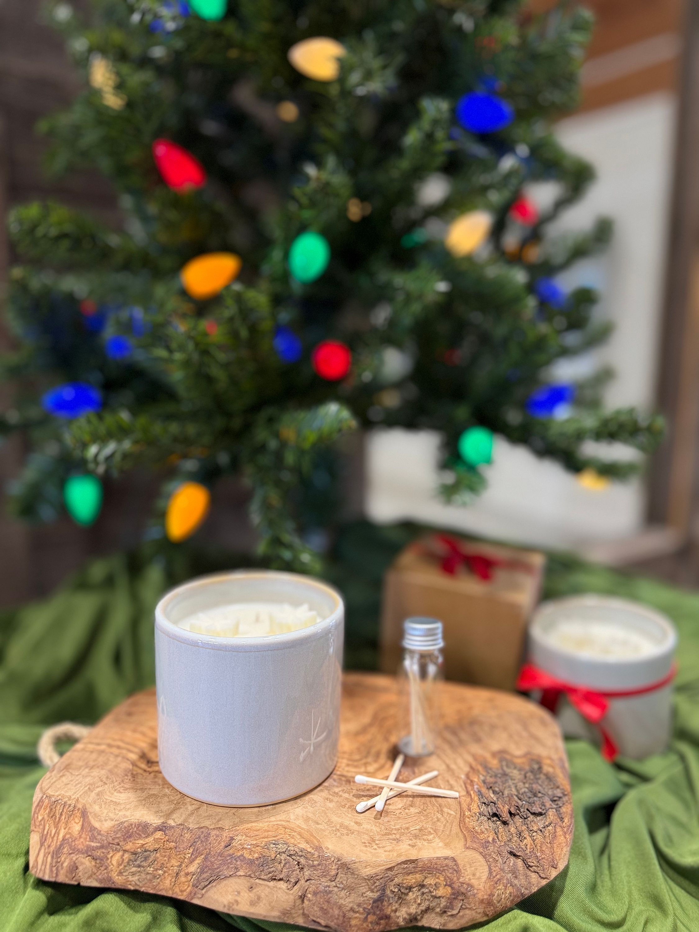 Celebrate these cold months with a perfect 9oz soy wax candle topped with a winter wonderland snowflake(s). Each ceramic candle jar comes boxed up with a bow and a color-matching mini match jar inside!