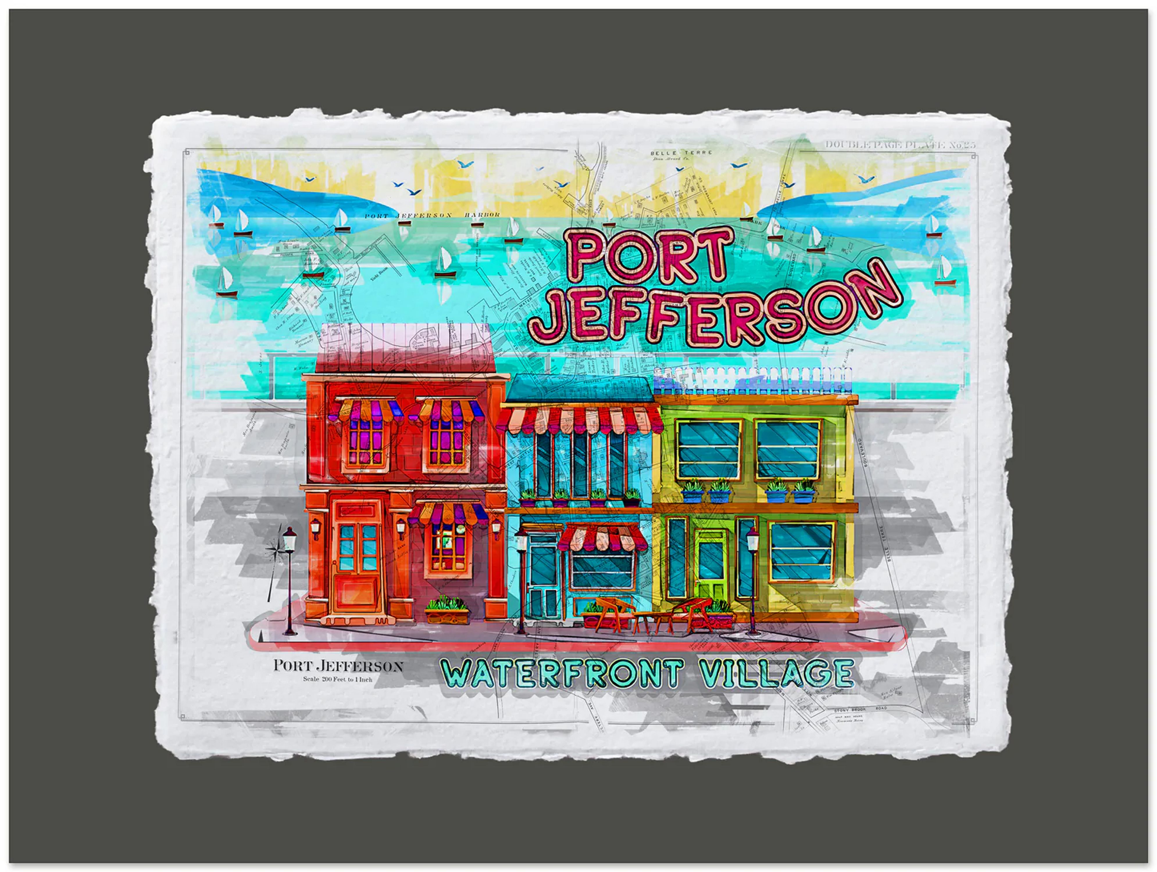 Admire the charm, scenic beauty and local history of Long Island with this original creative design. ☕ Vintage style premium inkjet art print ☕ Handmade cotton paper with deckle edge ☕ Float mounted to a durable mat board