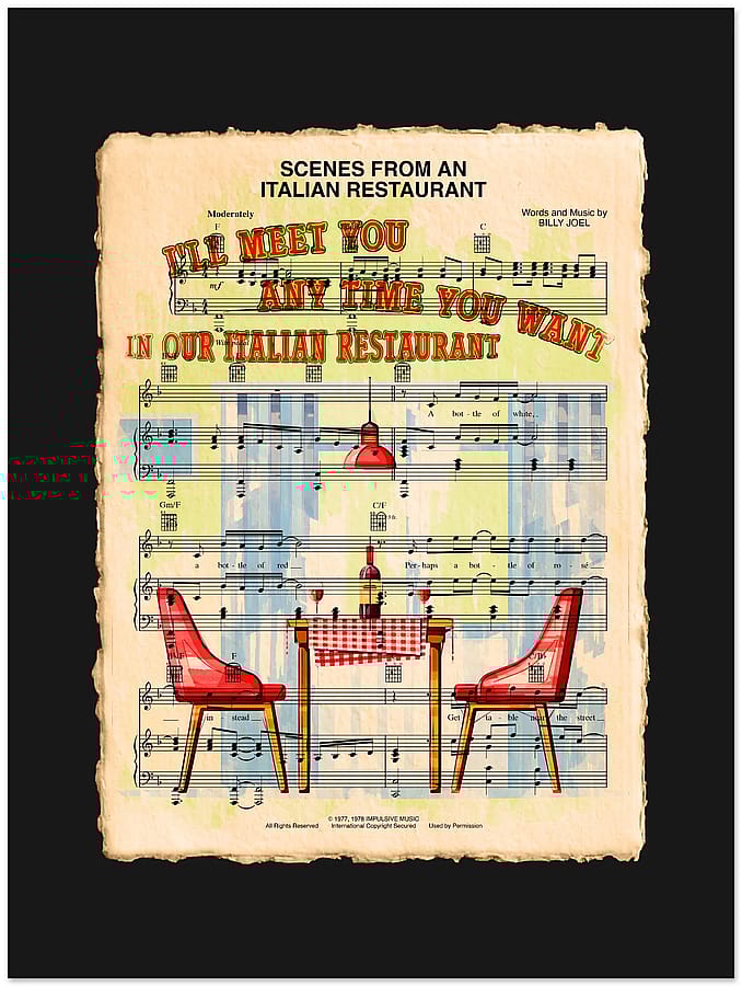 Original creative design layered over authentic sheet music, capturing the essence of music and art. Perfect for music lovers and avid fans of Billy Joel. ☕ Vintage style premium inkjet art print ☕ Handmade cotton paper with deckle edge ☕ Float mounted to a durable mat board