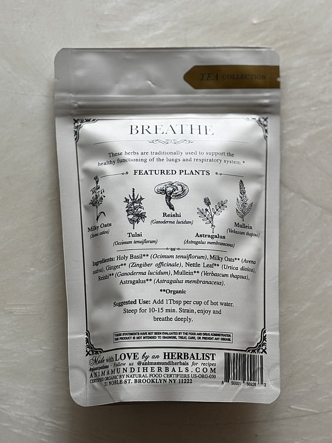 Breathe Tea is a soothing, organic herbal blend of herbs traditionally used to support respiratory wellness and promote a sense of clarity with every sip. Rooted in time-honored practices, this blend features botanicals revered for their ability to encourage easy, mindful breathing and inner calm—making it a beautiful ally during times of seasonal or environmental stress.
