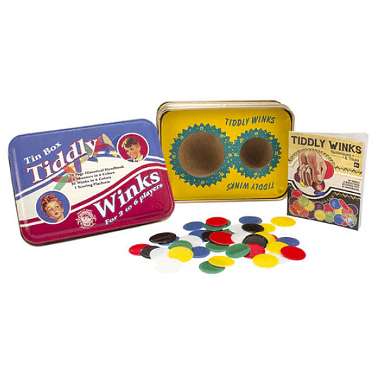 Bring classic tabletop fun to family game night with Tin Box Tiddly Winks — a nostalgic skill and strategy game that’s been enjoyed by generations. Flick the small “winks” with larger “shooters” to score points and outplay your opponents in this timeless favorite.