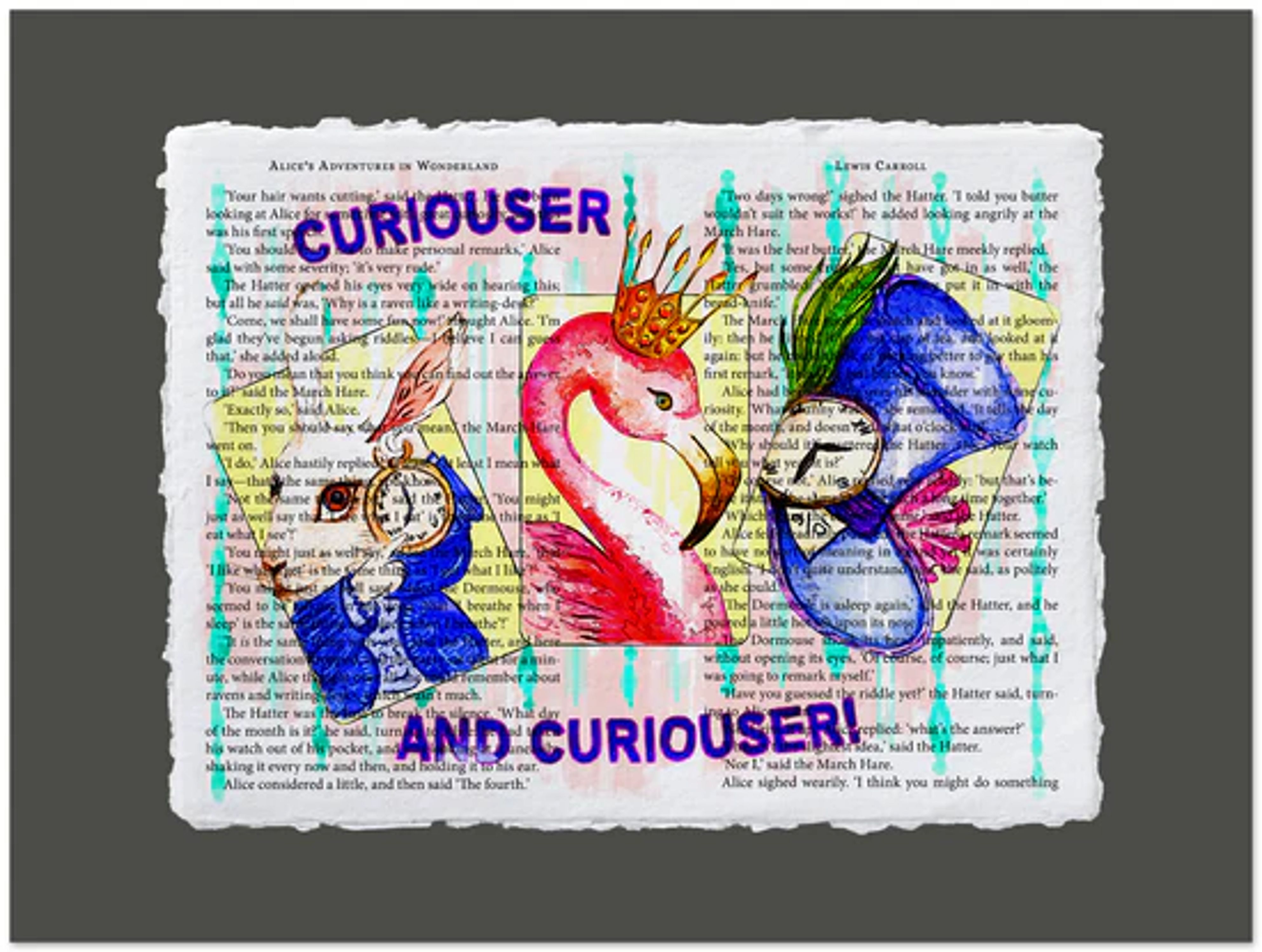 Original creative design layered over authentic book pages, capturing the essence of literature and art. Perfect for book lovers and avid fans of Alice's Adventures In Wonderland by Lewis Carroll.