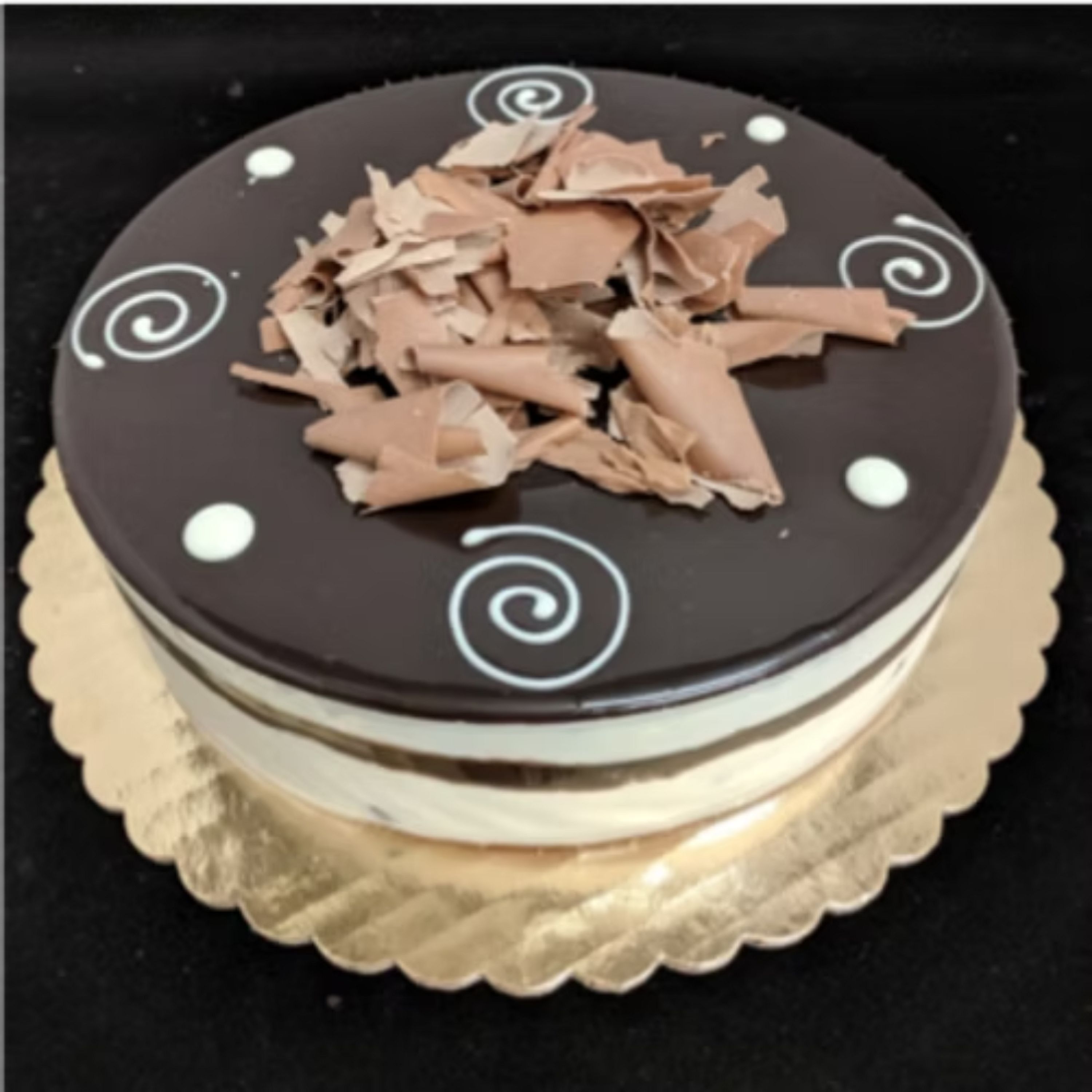 Cookie crust filled with Cannoli cream, Chocolate ganache & a thin layer of vanilla cake