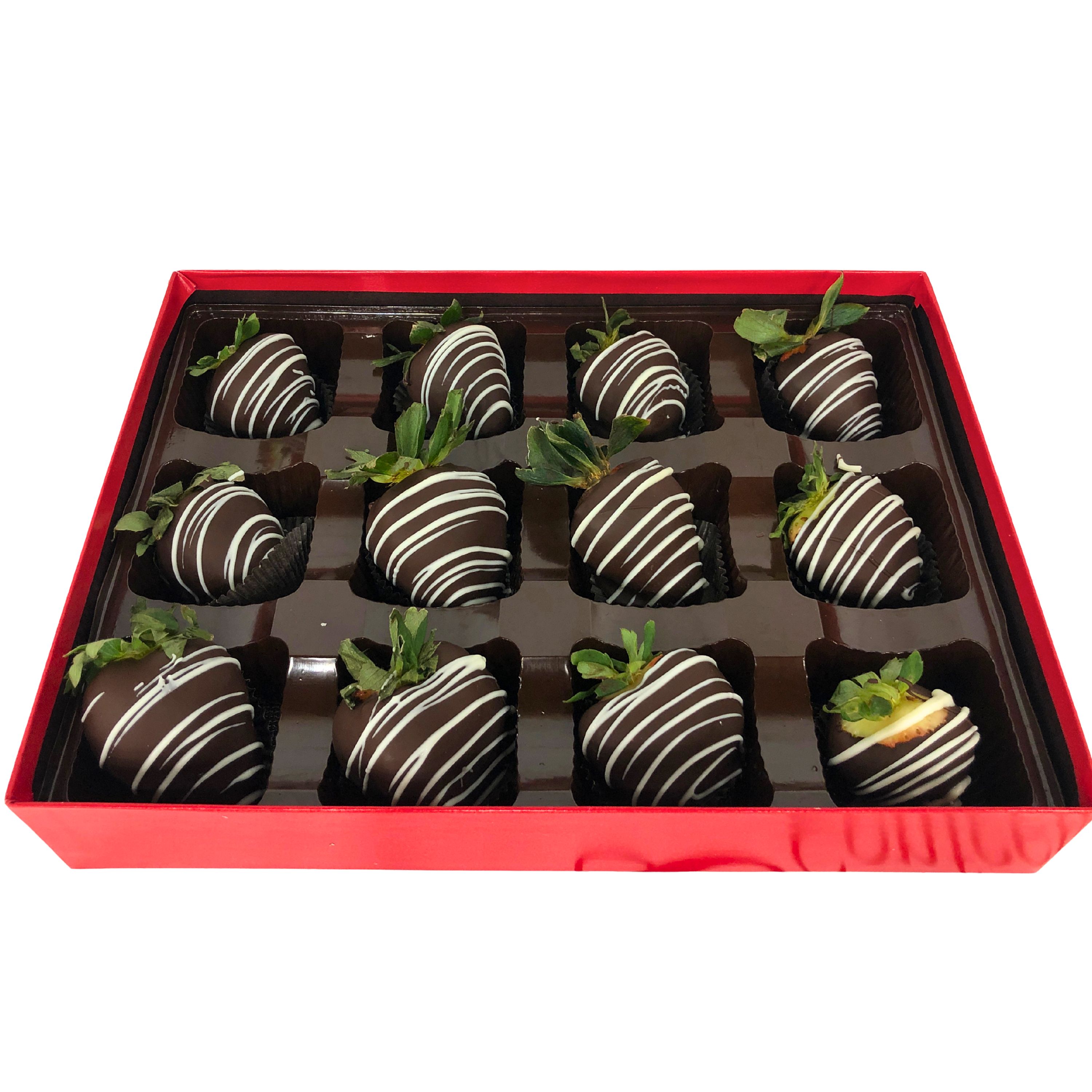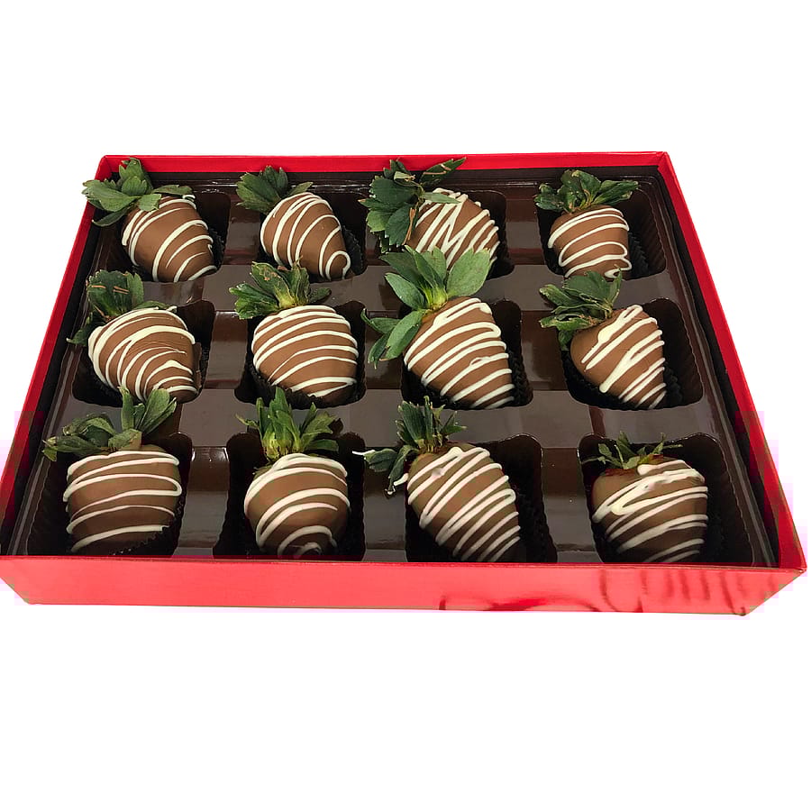 Available box sizes: 4, 6, 8, or 12 strawberries.