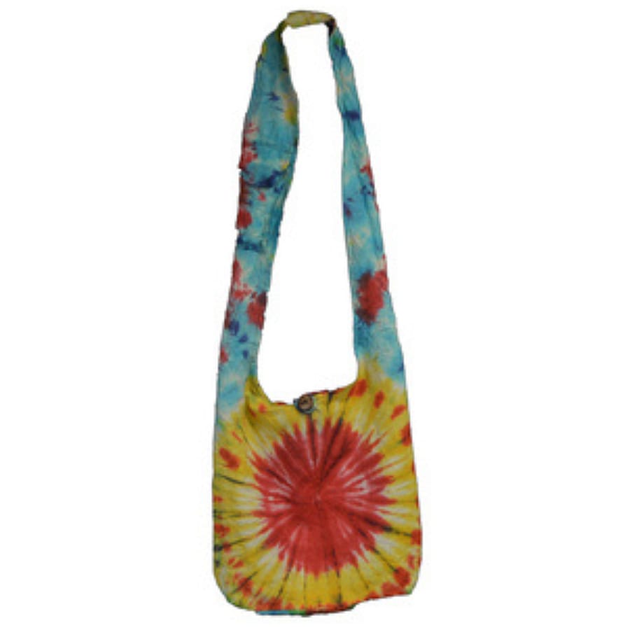 A crossbody sling bag featuring a tie dye design.