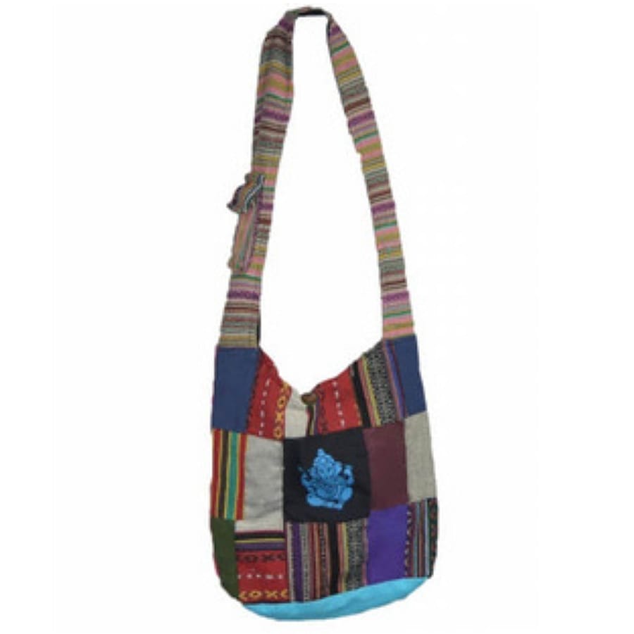 A crossbody sling bag featuring a colorful patterned design.