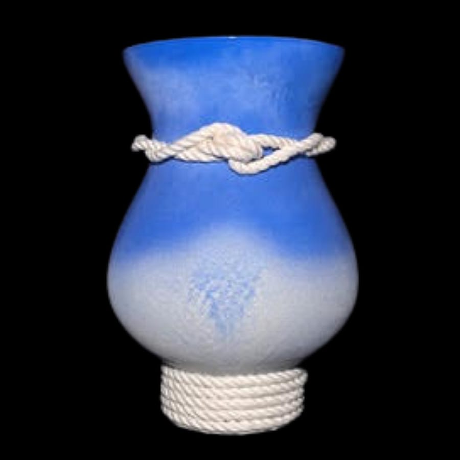 Hand Painted Glass Vase Featuring hand tied jute rope