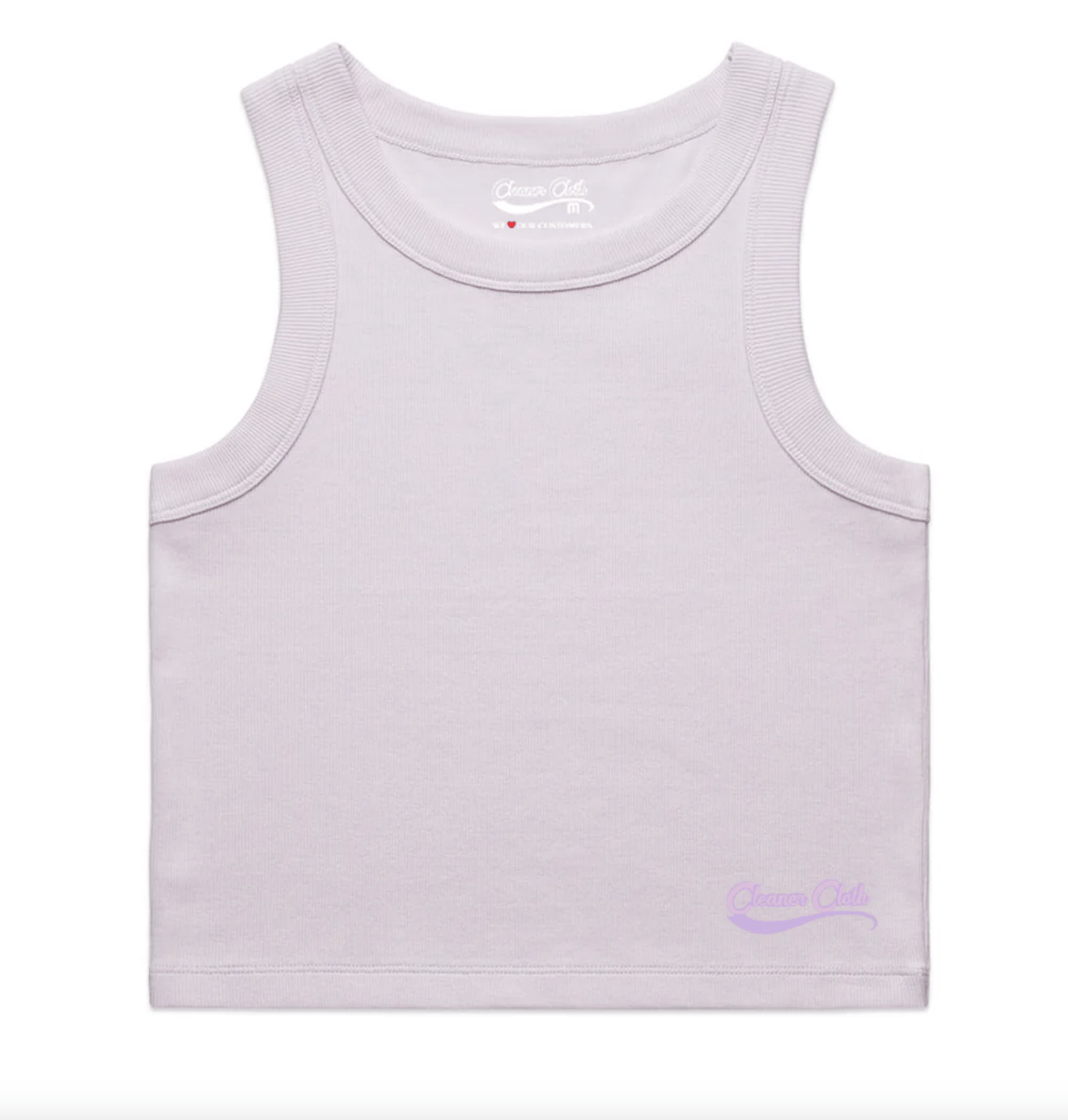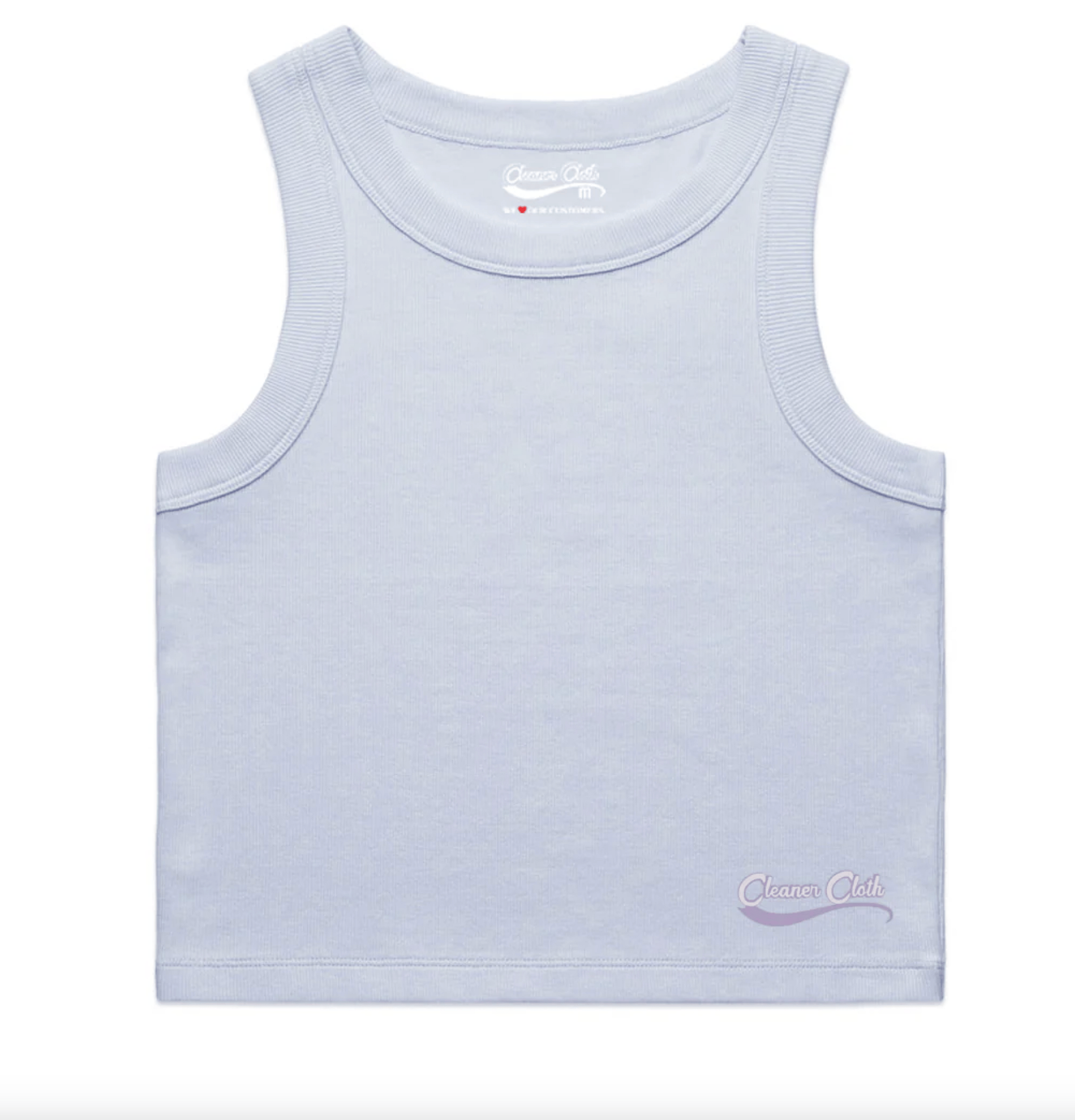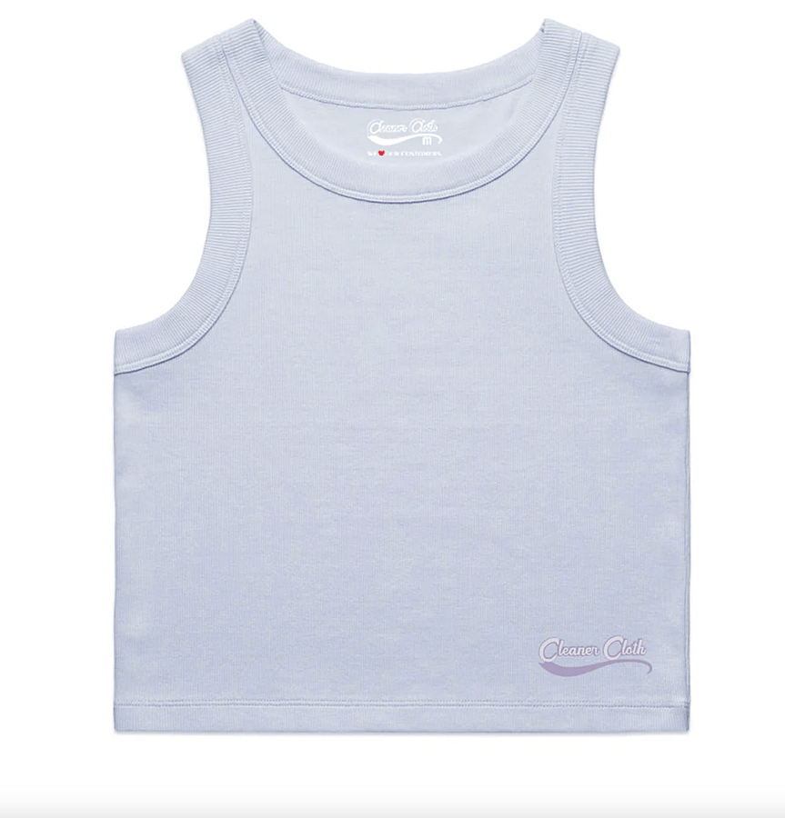 Slightly cropped with a slim, flattering fit. Made from 2x2 rib — 95% cotton, 5% spandex — for softness with stretch. Finished with the classic Cleaner Cloth logo.