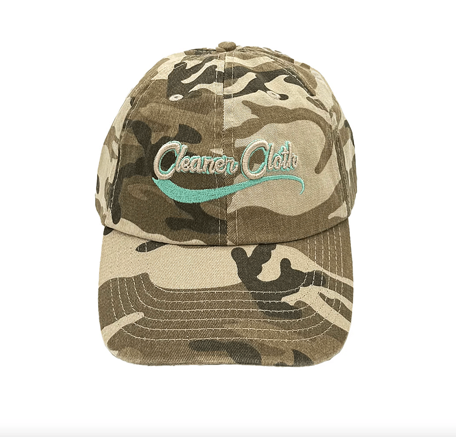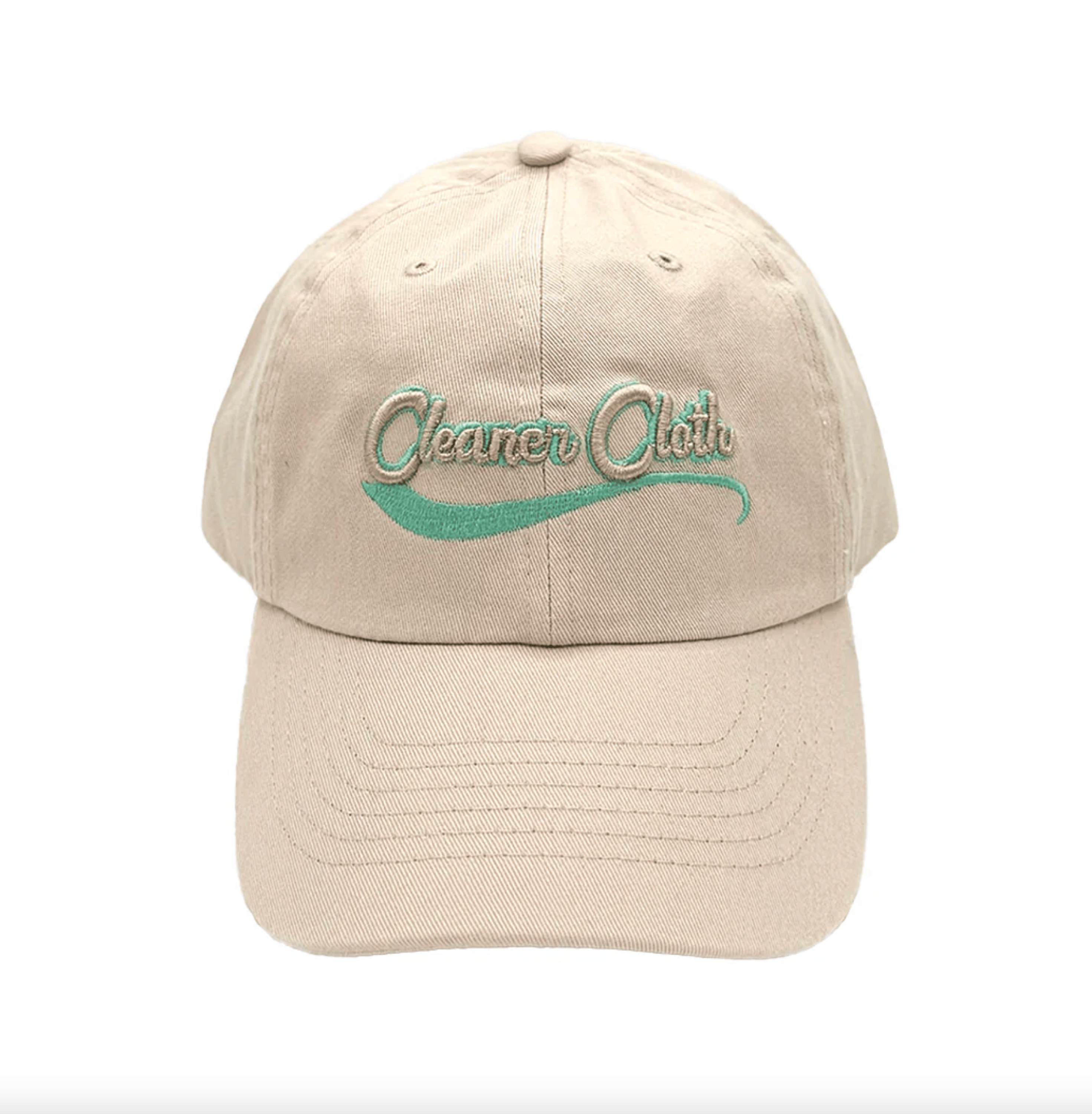 Adorned with the classic Cleaner Cloth logo in colorful teal and tan puff embroidery - perfect for summer!