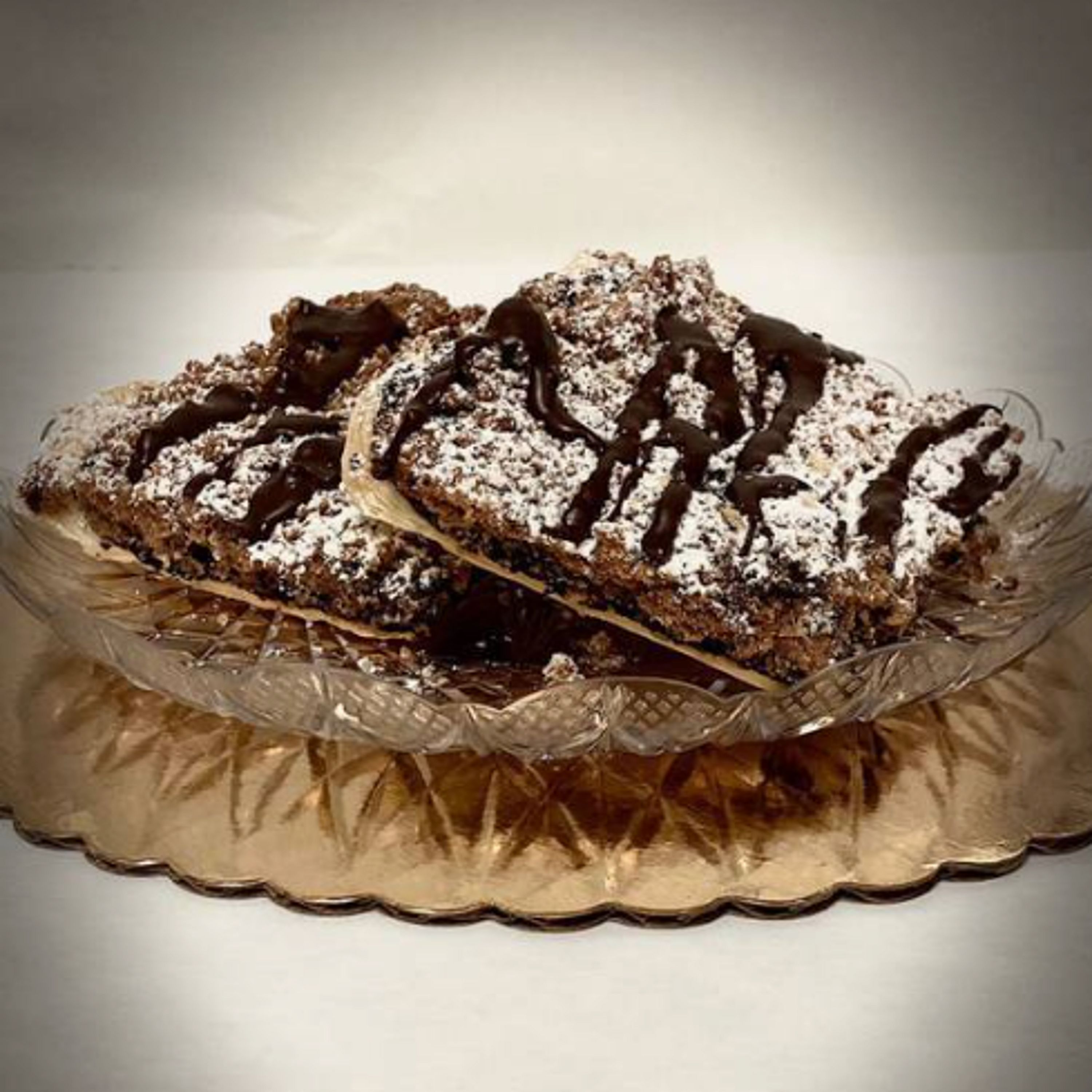 Rich, velvety chocolate in a crumbly pastry square.