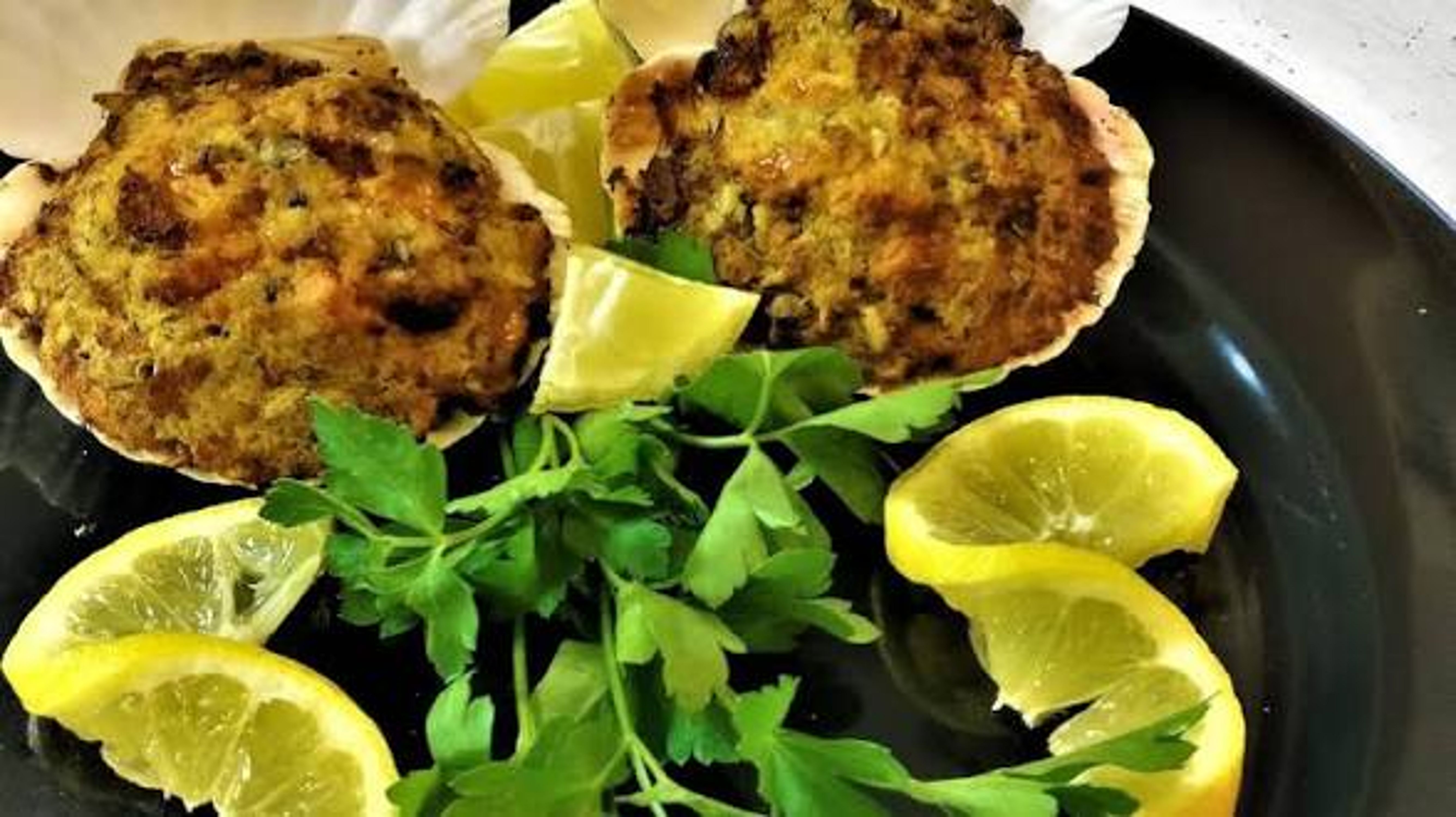 Made with freshly steamed and chopped clams sauteed with bacon and butter, then mixed with seasoned breadcrumbs, herbs (contains some cilantro), and lemon.