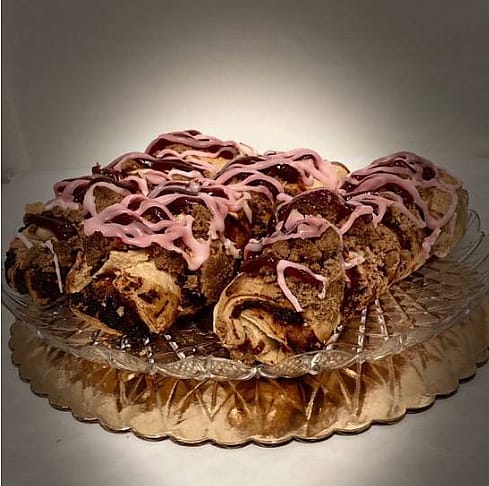 Flaky puff pastry filled with sweet raspberry filling.