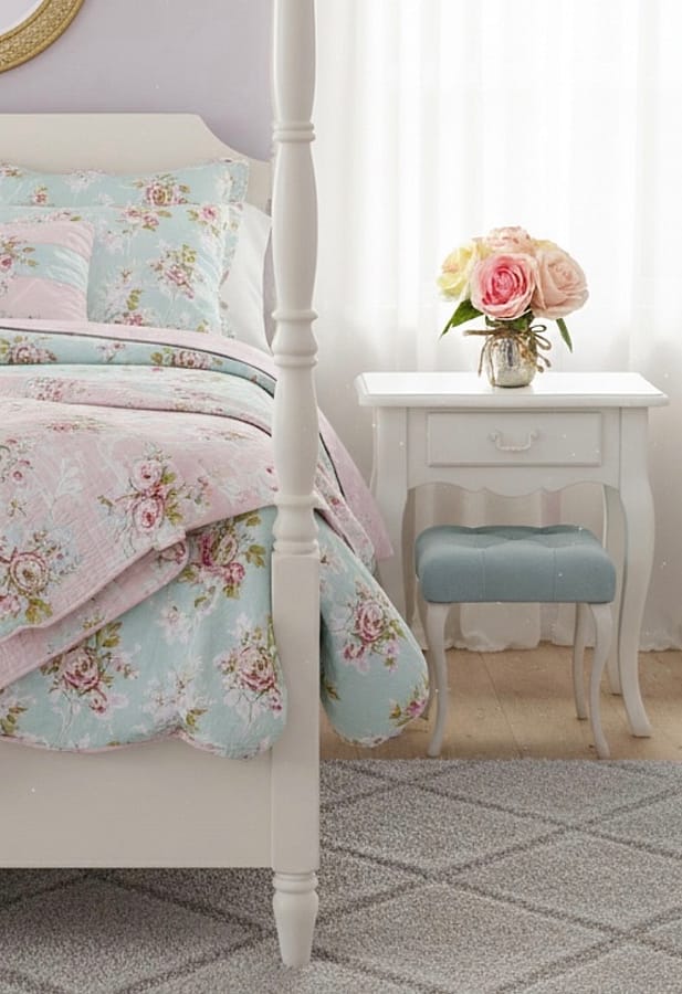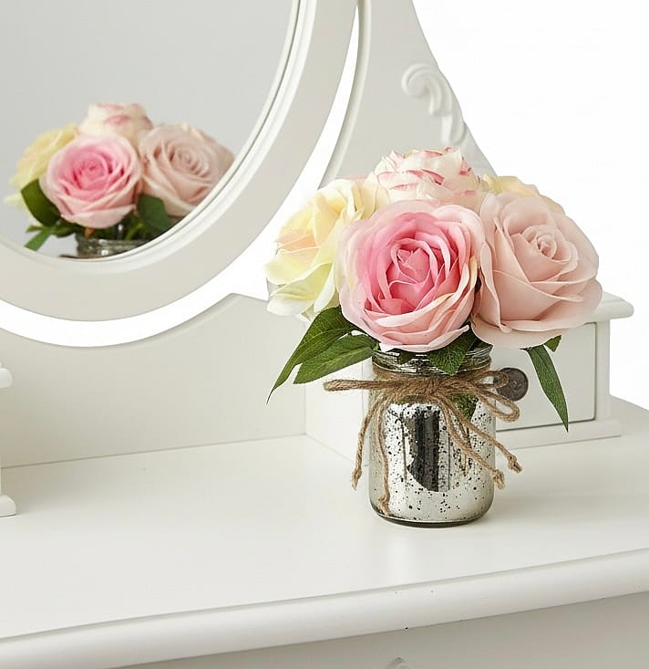 This forever floral will look precious on a desk vanity dresser or table.