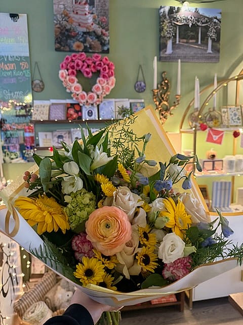 - Hand-tied seasonal bouquet