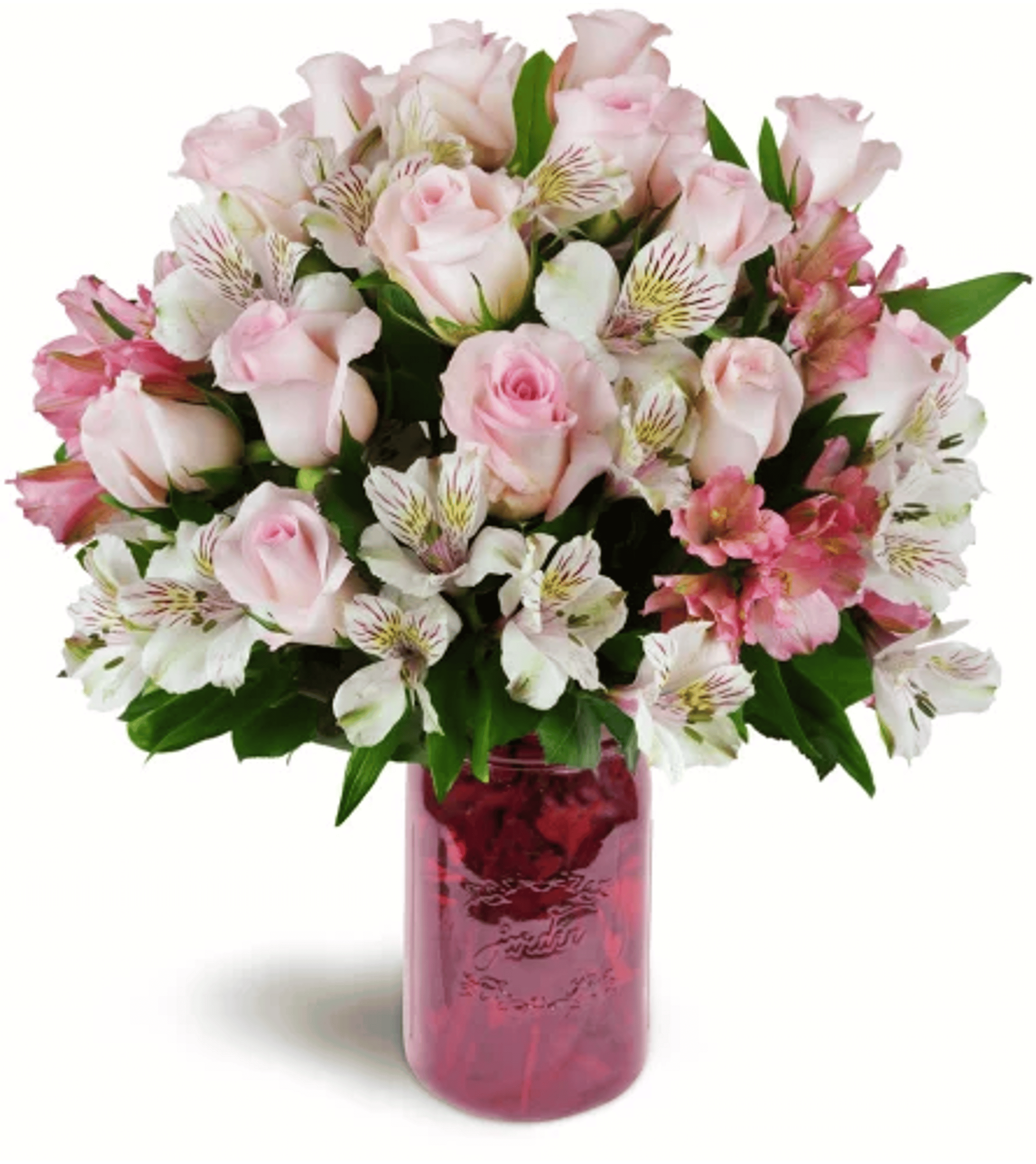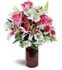 Gorgeous pink roses and Peruvian lilies are delicately arranged into a stunning array of blooms to make your love's heart flutter with happiness