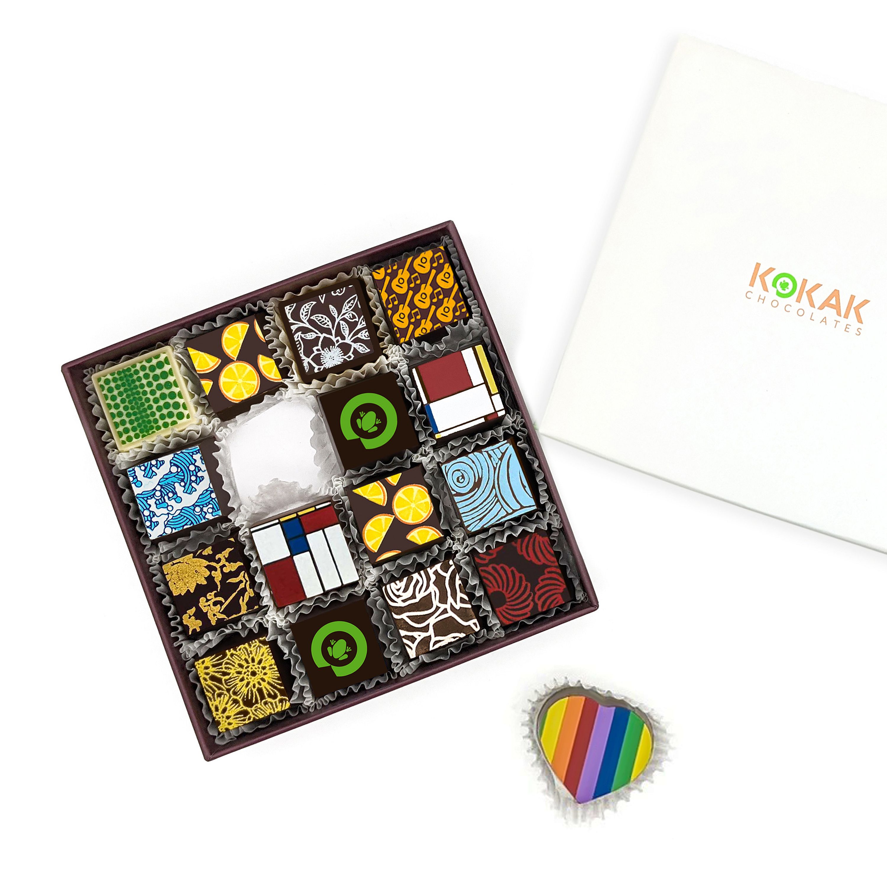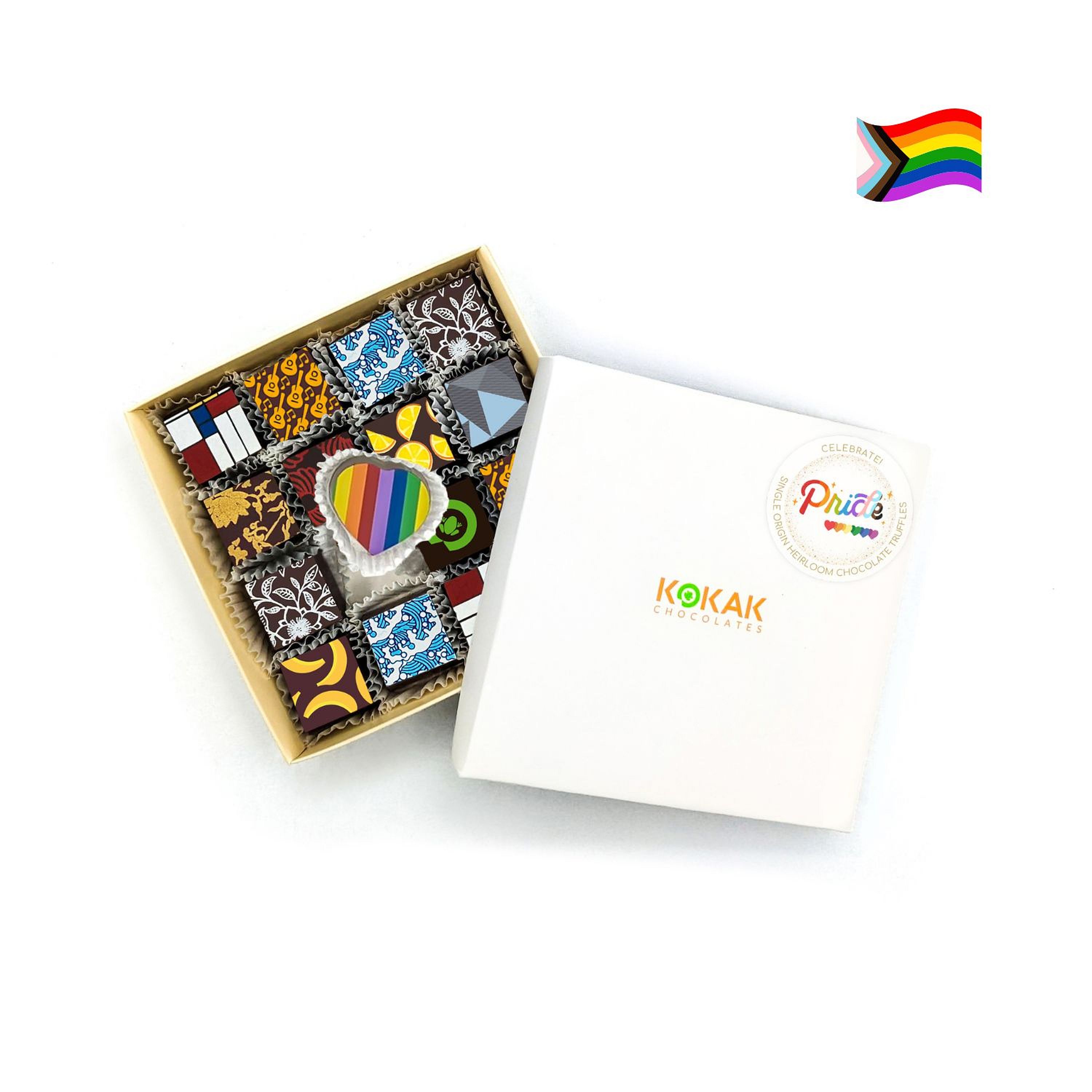 Happy Pride! Our team at Kokak Chocolates created this 16-pc box of heirloom chocolate truffles to celebrate equality, justice and acceptance in our community. It's an honor to make these chocolates for you and your loved ones. Enjoy!