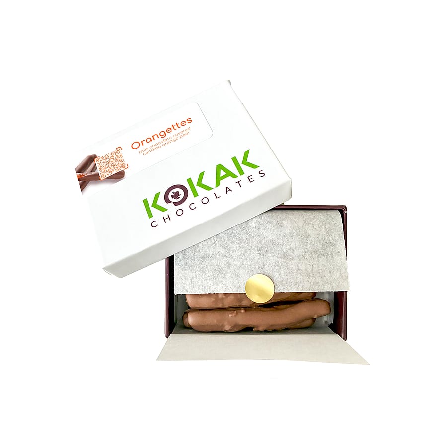 Our Kokak Chocolates' Orangettes in Dark Chocolate are a luscious blend of bright citrus and creamy indulgence. Made with tender strips of candied orange peel, each piece is hand-dipped in heirloom chocolate for the perfect balance of sweet, vibrant, and rich flavors.