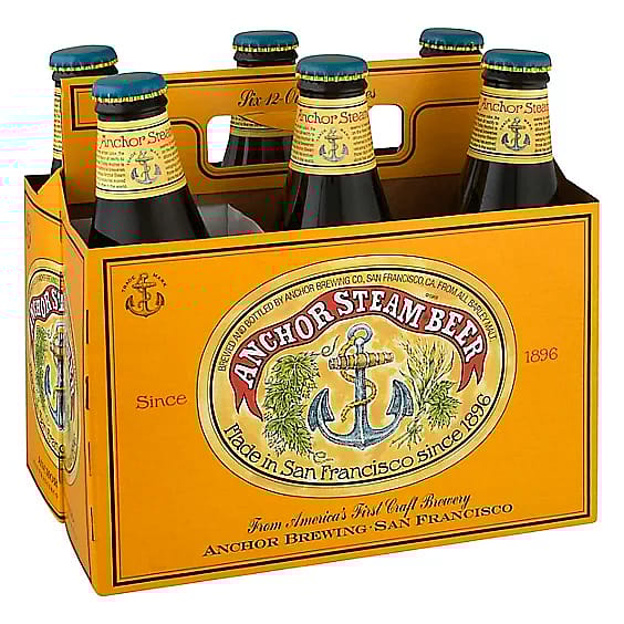From all barley malt. Since 1896. From all barley malt. From America's first craft brewery, Anchor Brewing, San Francisco. Anchor Steam Beer: Anchor Steam Beer's roots extend to the California Gold Rush, when primitive conditions and the lack of ice forced lager-beer brewers to improvise. Pale & caramel two-row barley malt. Northern Brewer whole-cone hops. Anchor's own lager yeast. Solid copper brewhouse. Open fermentation. Natural carbonation from Krausening. First brew: 1896. First modern bottling: 1971. An American original and a world classic. America's first craft beer. Anchor Brewing Co.: Anchor Brewing is one of America's oldest breweries. with an extraordinary heritage dating to the mid-nineteenth century. In 1965, 27-year-old Fritz Maytag acquired and revived the struggling San Francisco brewery. at a time when mass-produced beer completely dominated the American brewing landscape. Maytag started a revolution in beer that originated today's craft-beer movement. An undisputed icon, Anchor is America's first craft brewery. anchorbrewing.com. Instagram. Twitter. (at)anchorbrewing. Facebook: Facebook.com/anchorbrewing. Tel 415/863-8350. Brewed and bottled by Anchor Brewing Co., San Francisco, CA. Made in San Francisco since 1896.