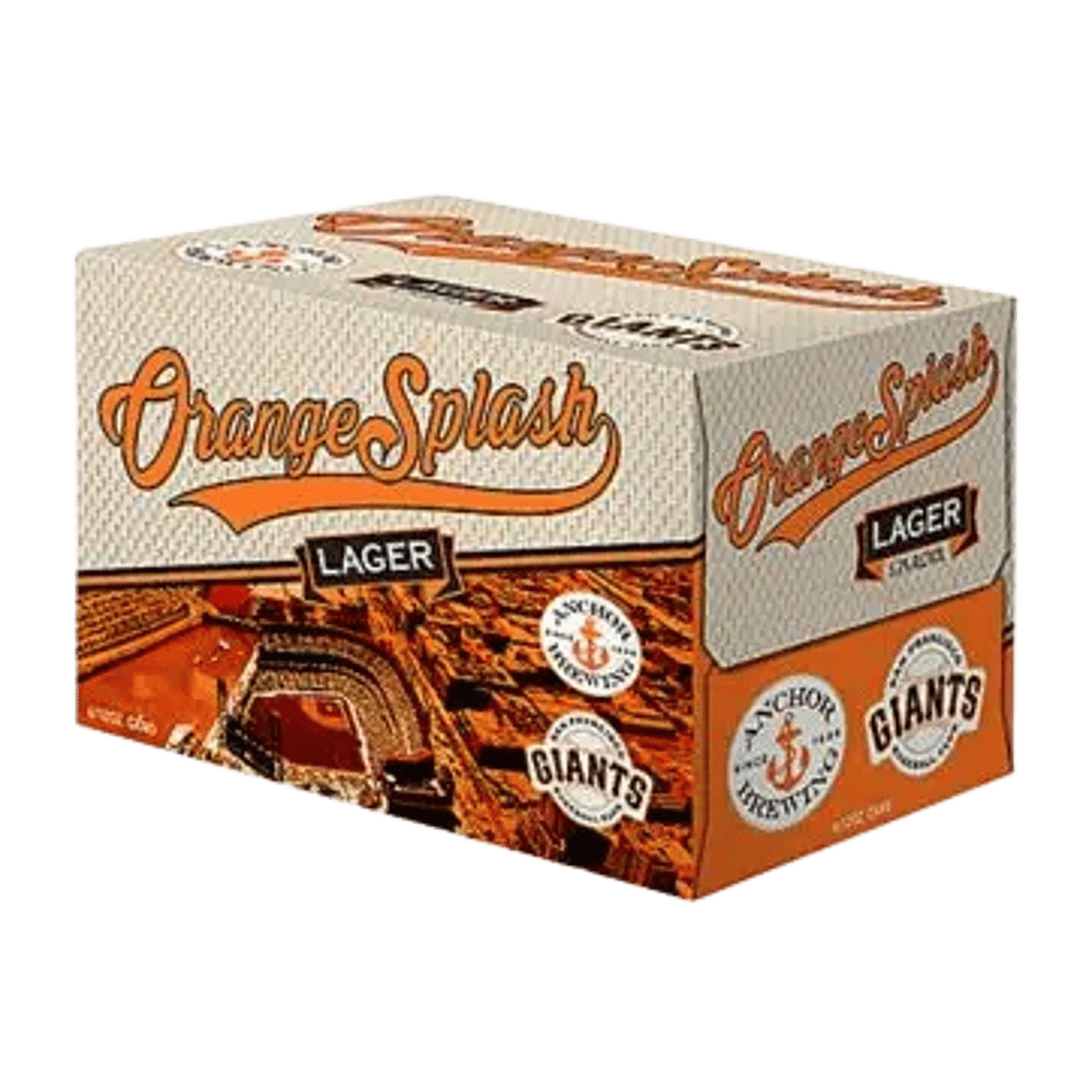 "Orange Splash" a specific, limited-edition release from Anchor Brewing, typically mentioned as "Orange Splash Lager" in 6-pack cans.