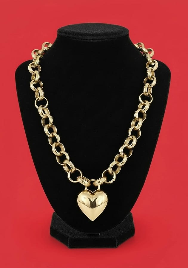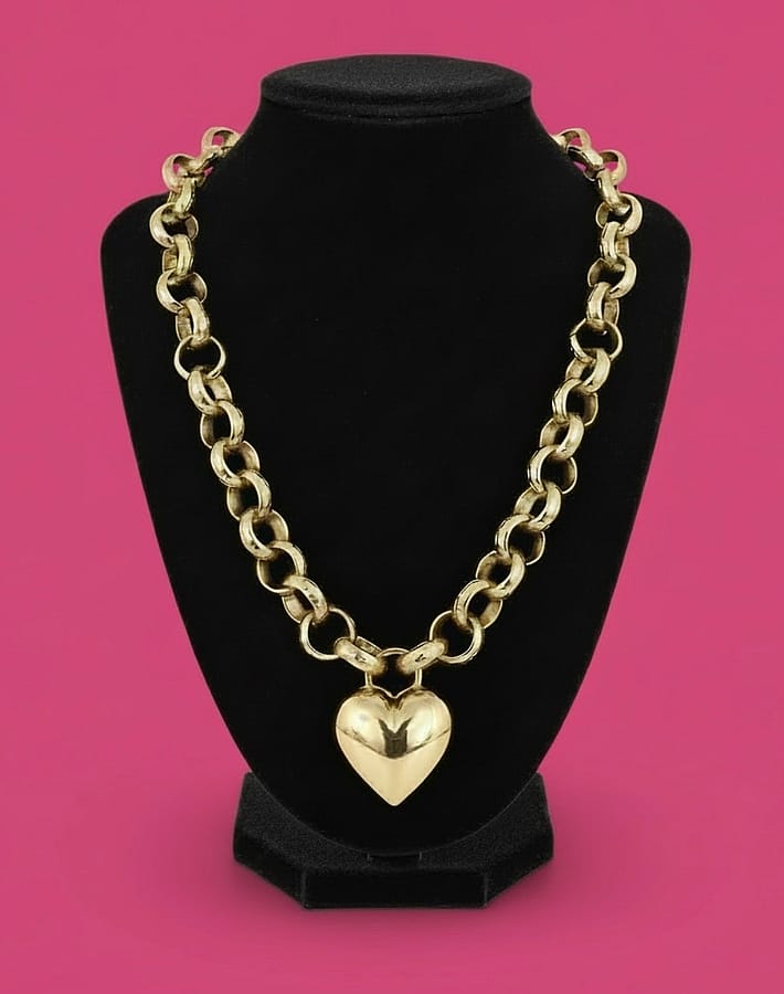 Chic and fashionable, this large puff heart necklace with a chunky link chain is a stunning statement piece. Pair it with an Oxford shirt and jeans or elevate the look with a party dress and heels. Either way it will look fantastic.