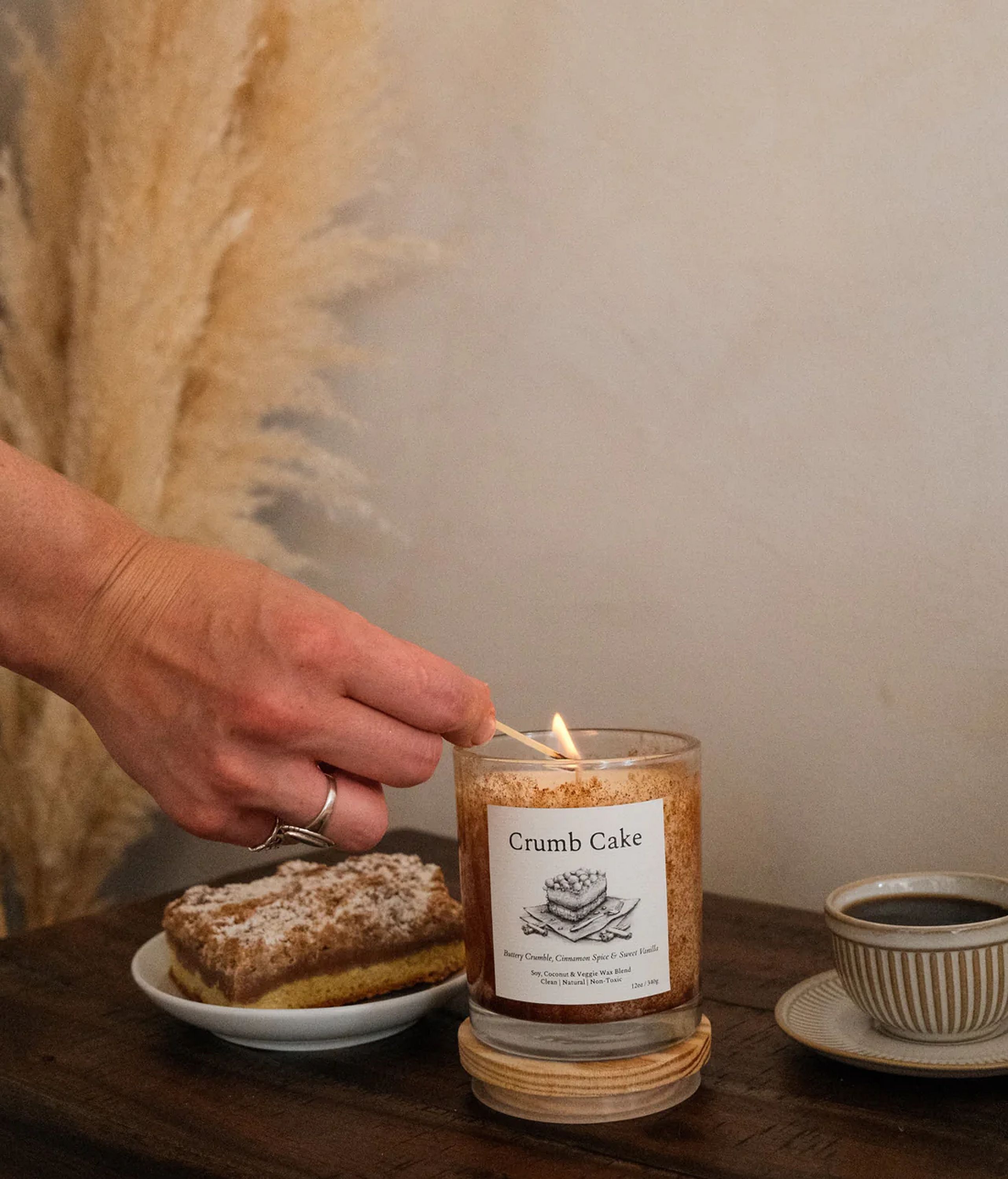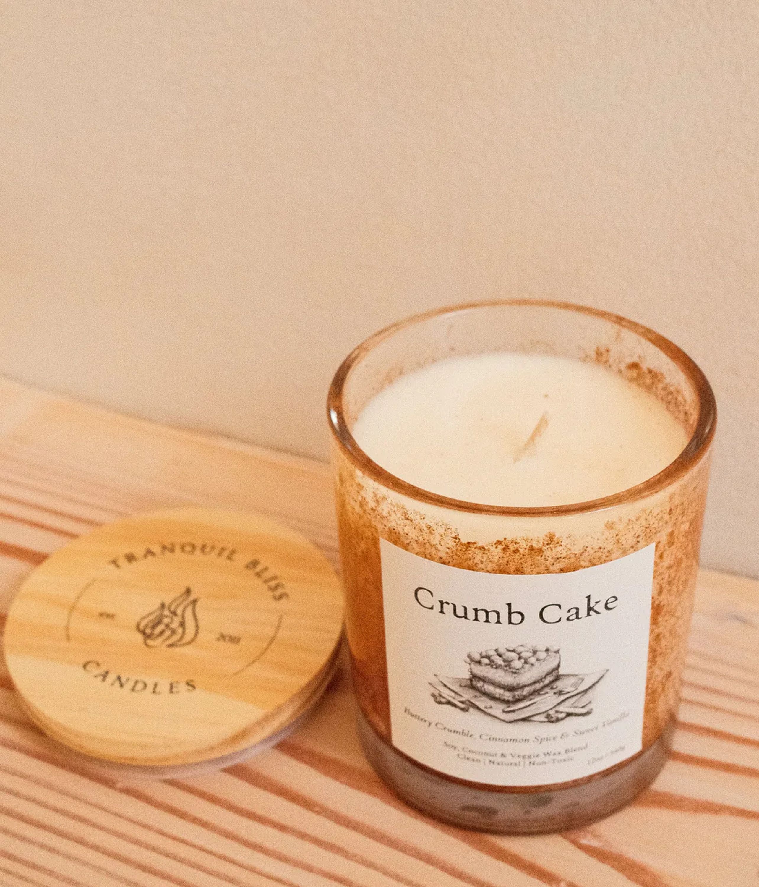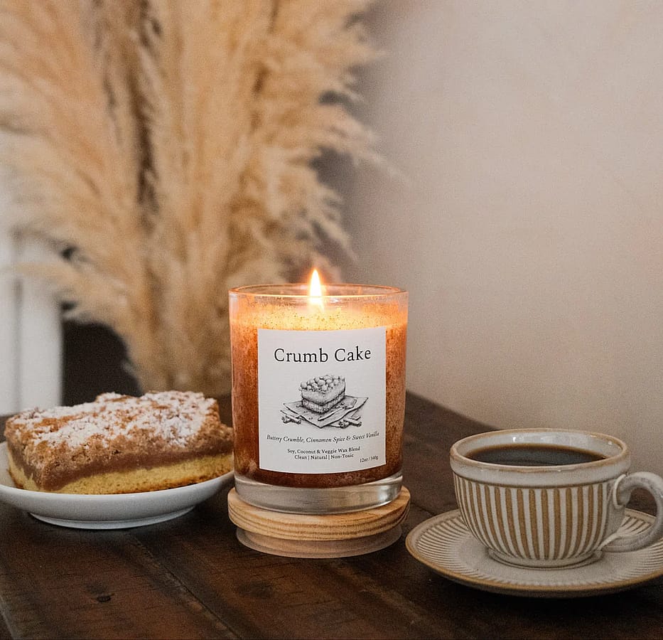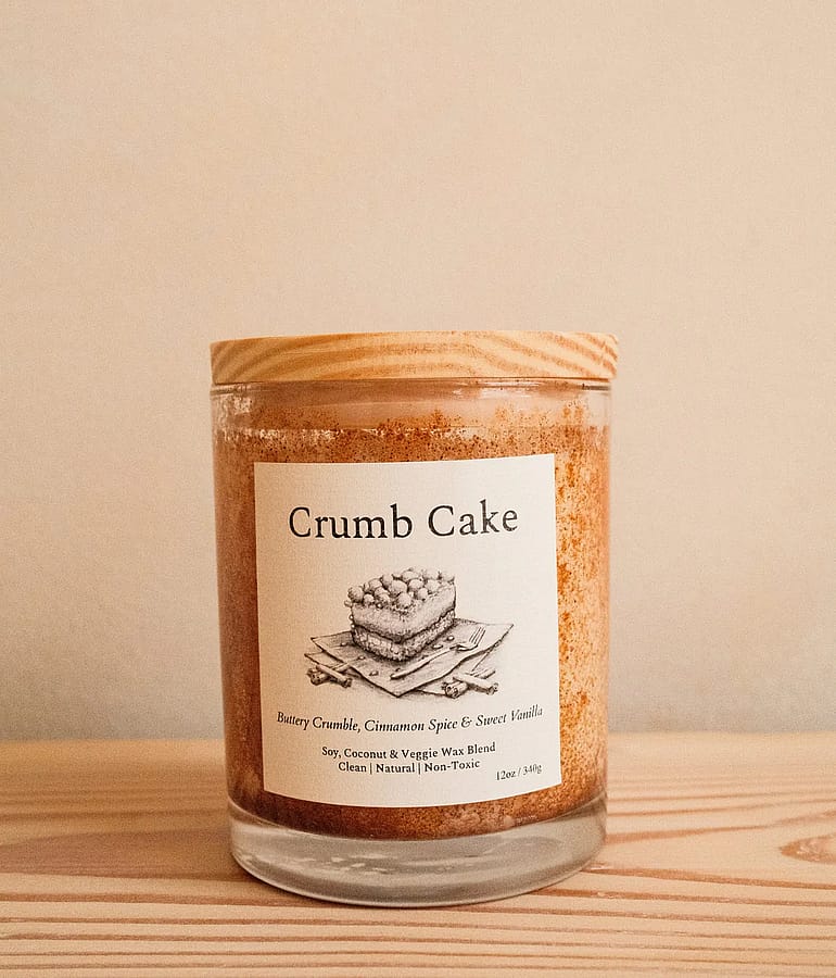 100% Natural Fragrance: A delicious blend of sweet baked cake, buttery cinnamon crumbs, and warm spices, created with essential and fragrance oils that are all-natural, clean, and free from phthalates, parabens, toxins, and California Prop 65 chemicals