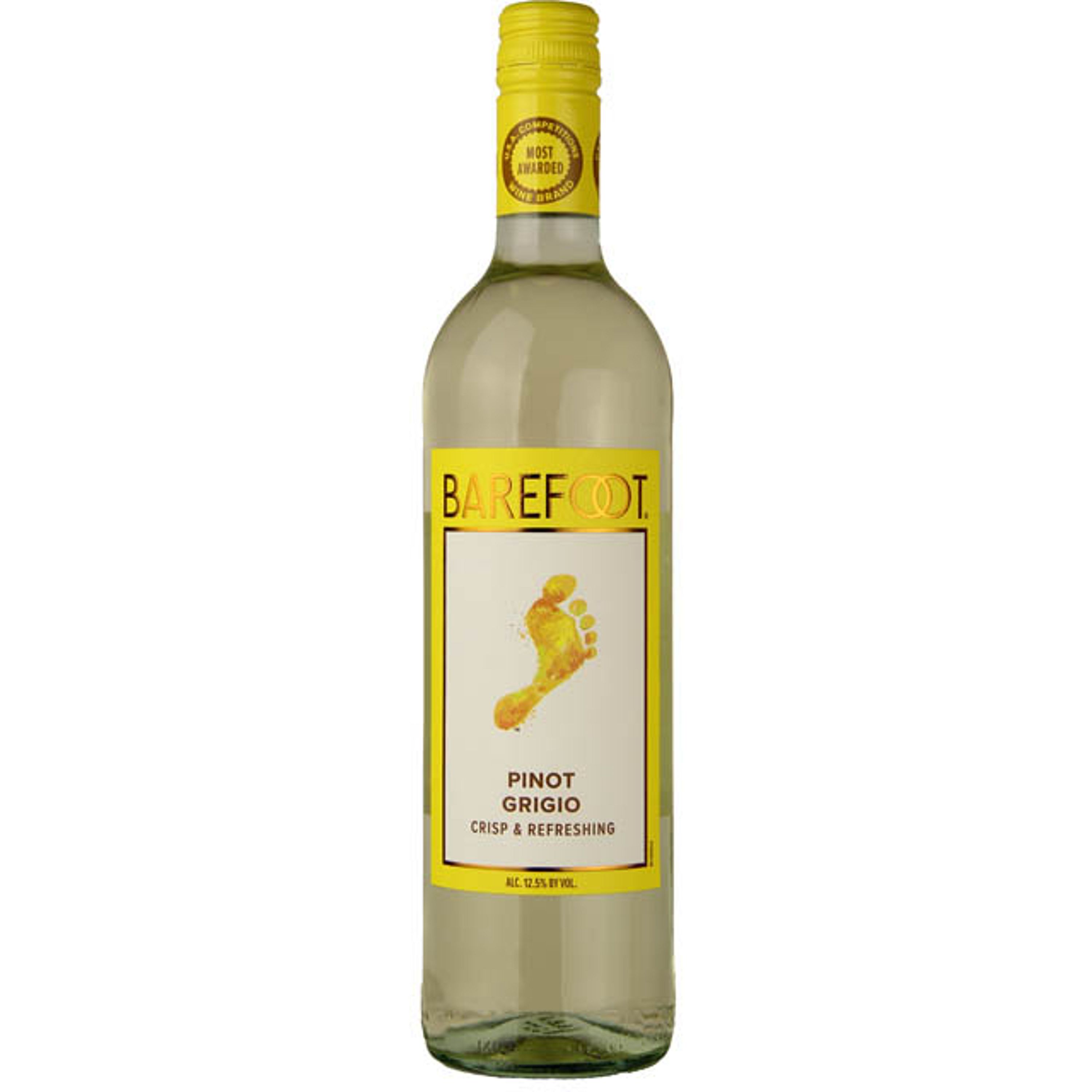 A light-bodied classic with a crisp, bright finish, Barefoot Pinot Grigio offers all the flavors of tart green apples with fresh, white peaches. Accented with floral blossoms and citrus aromas, this Pinot Grigio pairs perfectly with traditional favorites like poultry, pasta, and pizza. 86 Points Wine Enthusiast.