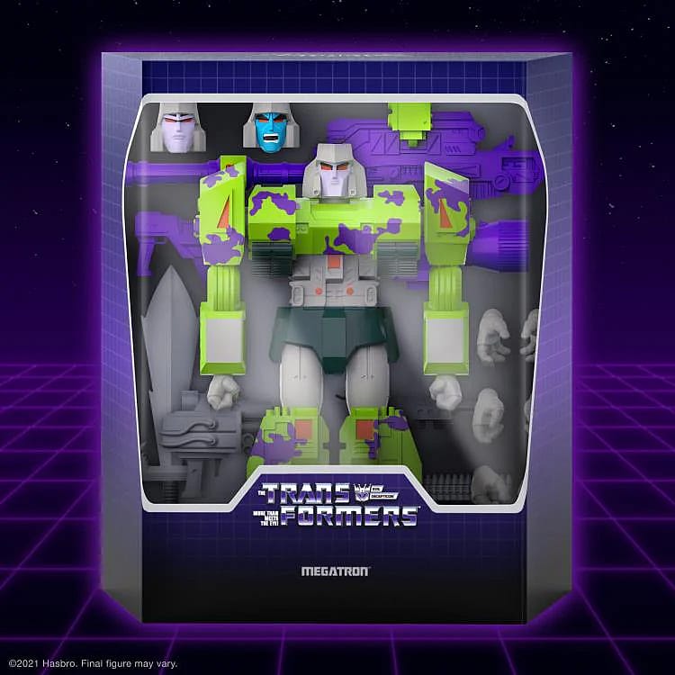 Inspired by the Transformers G2 toys and comics, Megatron is back and badder than ever! This 7-inch scale highly articulated Transformers ULTIMATES! figure of G2 Megatron features premium decoration and comes with interchangeable heads and hands as well as a variety of other accessories, including weapons inspired by both the comic series and previous toys.
