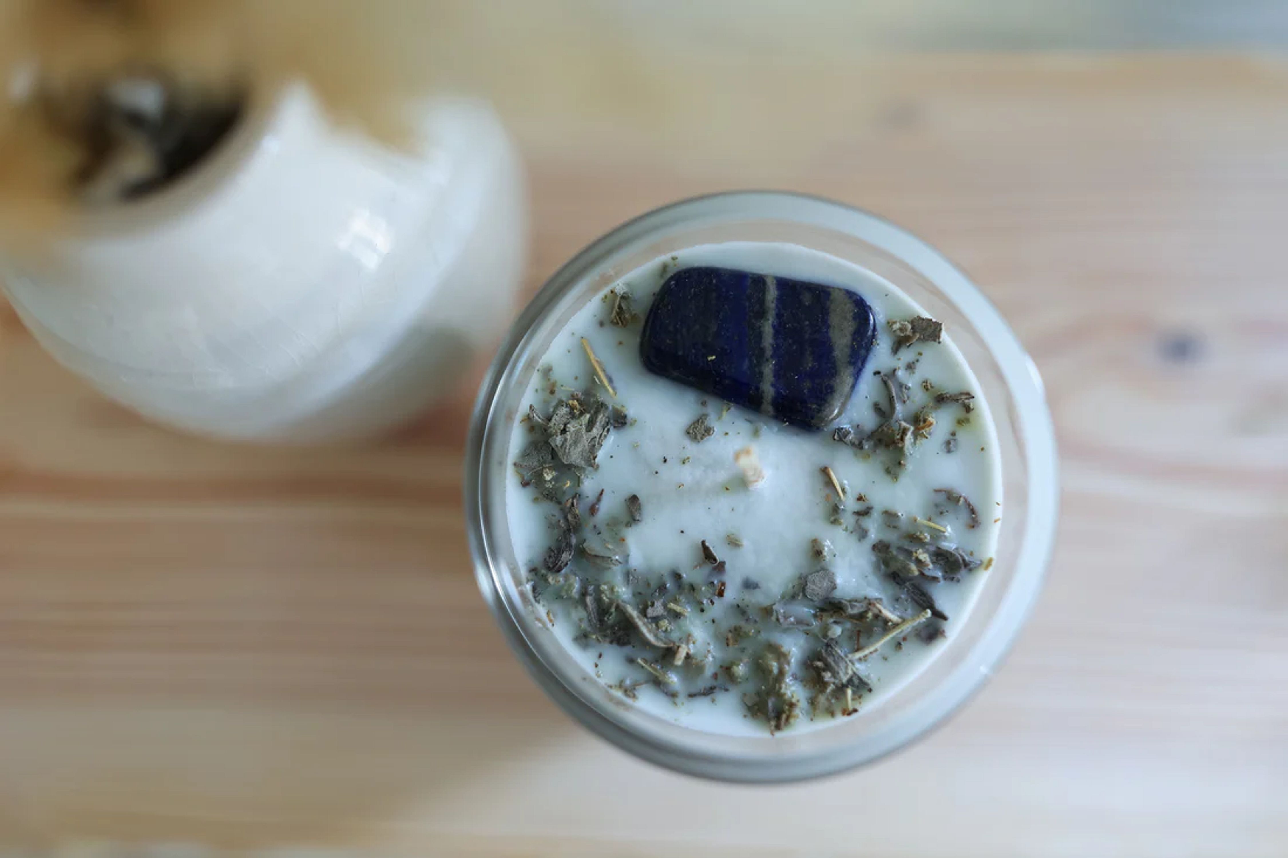 Enhanced with Lapis Lazuli crystal (Guidance Intention): Enhanced with Lapis Lazuli, this blend is set with a "Guidance Intention." Lapis Lazuli is known as the stone of wisdom and truth, promoting mental clarity, intuition, and spiritual insight.