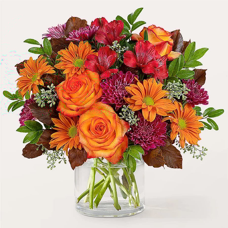 Share your sentiments by sending the Brisk Morning Bouquet, an exquisite display of orange, purple, and red florals to capture the season so sweetly.