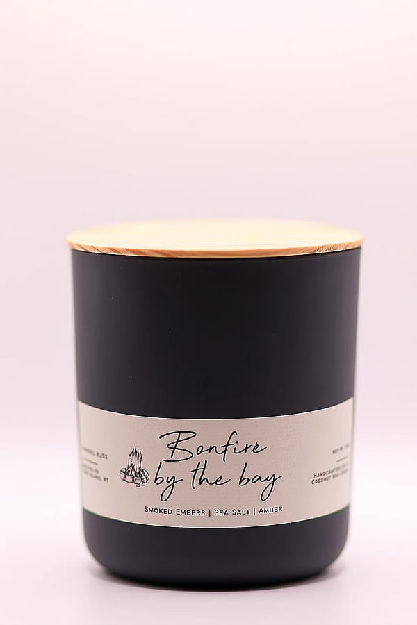 Indulge in the mesmerizing charm of coastal evenings with 'Bonfire by The Bay.' Housed in a chic Matte Charcoal jar, this candle encapsulates the essence of a serene night by the shore.