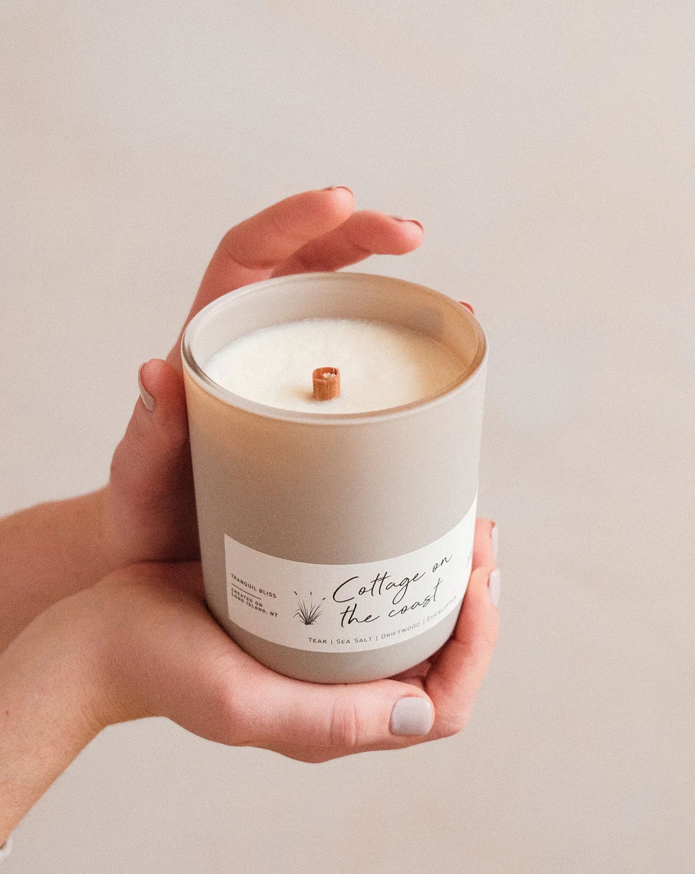 Coastal Inspired Fragrance: A blend of Sea Salt, Driftwood, Bergamot, Amber, and Eucalyptus for a seaside tranquility.