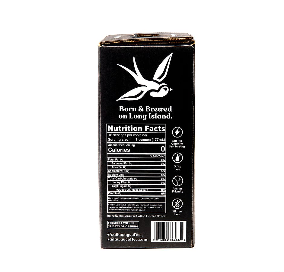STAY BUZZED- Sail Away ORGANIC Cold Brew Taps Coffee contains 120mg of caffeine per 8oz serving, giving you the clean energy you need- morning, noon, or night.