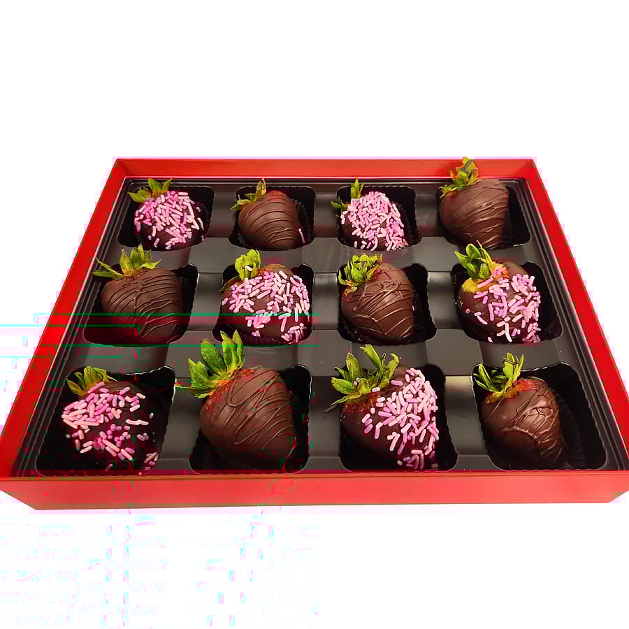 Available box sizes: 4, 6, 8, or 12 strawberries.
