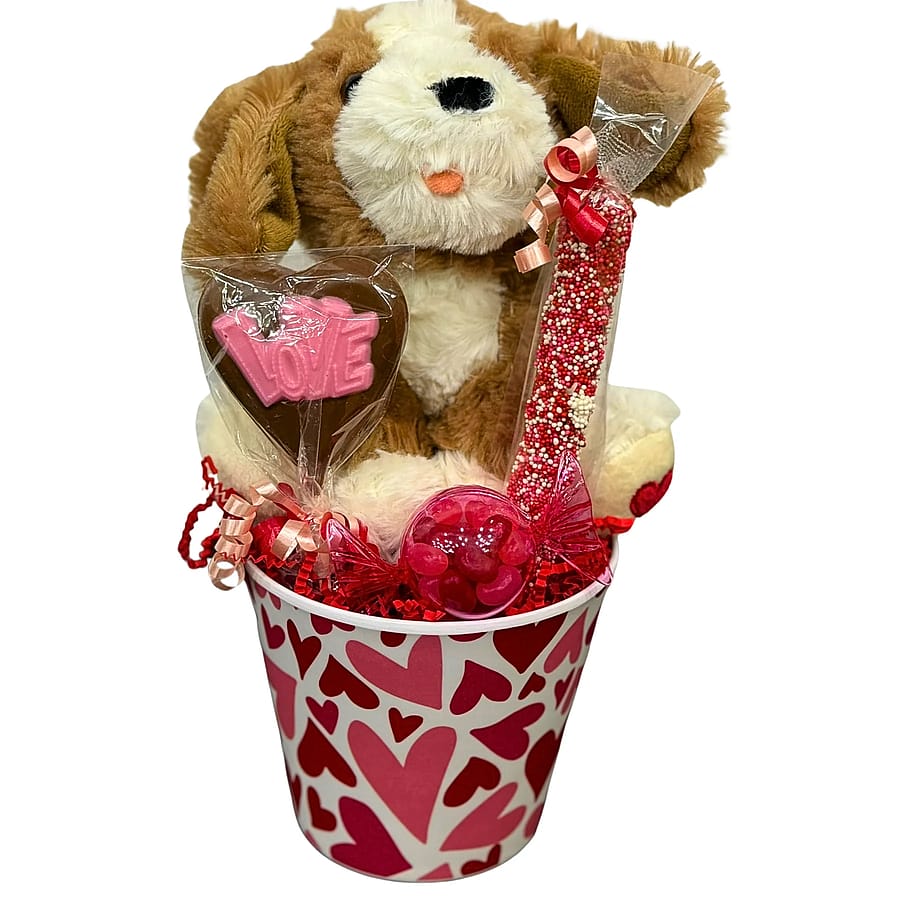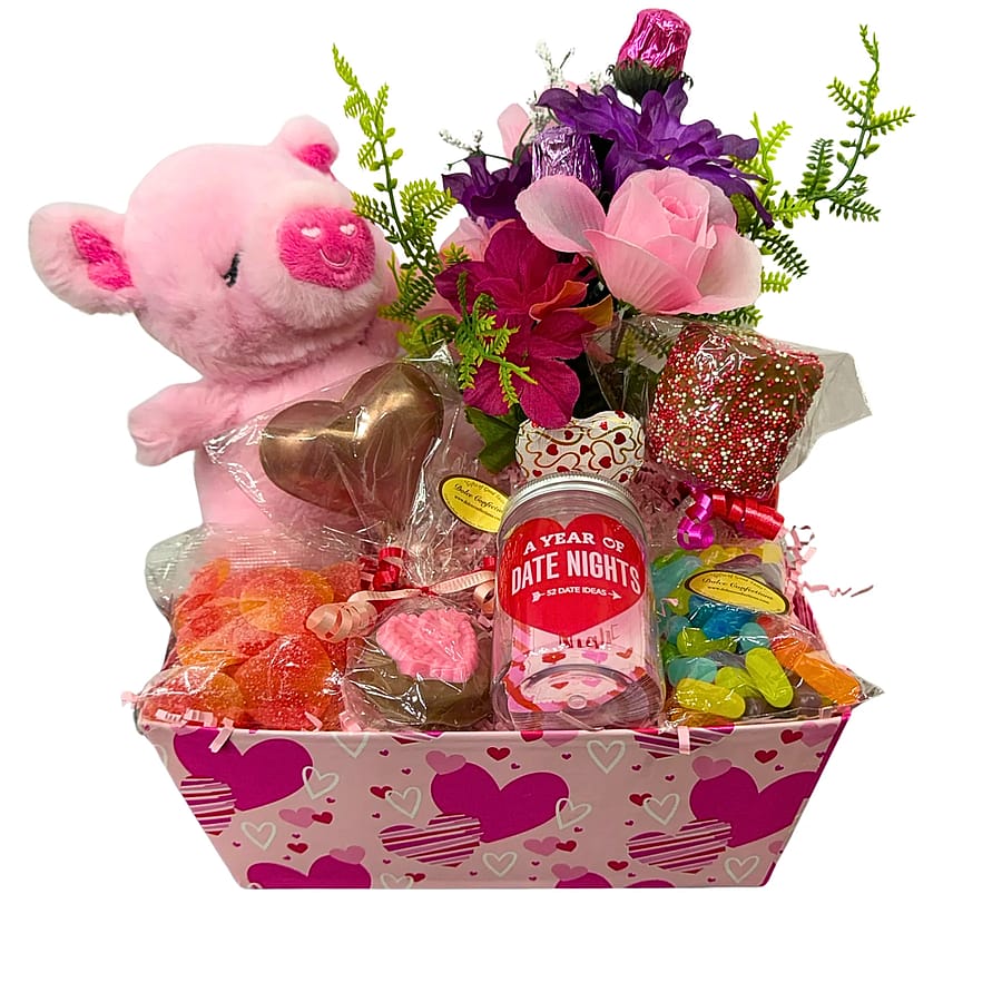 Our Assorted Chocolate & Gift Boxes feature a variety of Valentine’s-themed gift arrangements, thoughtfully assembled with a mix of chocolates, candies, plush items, and decorative accents.