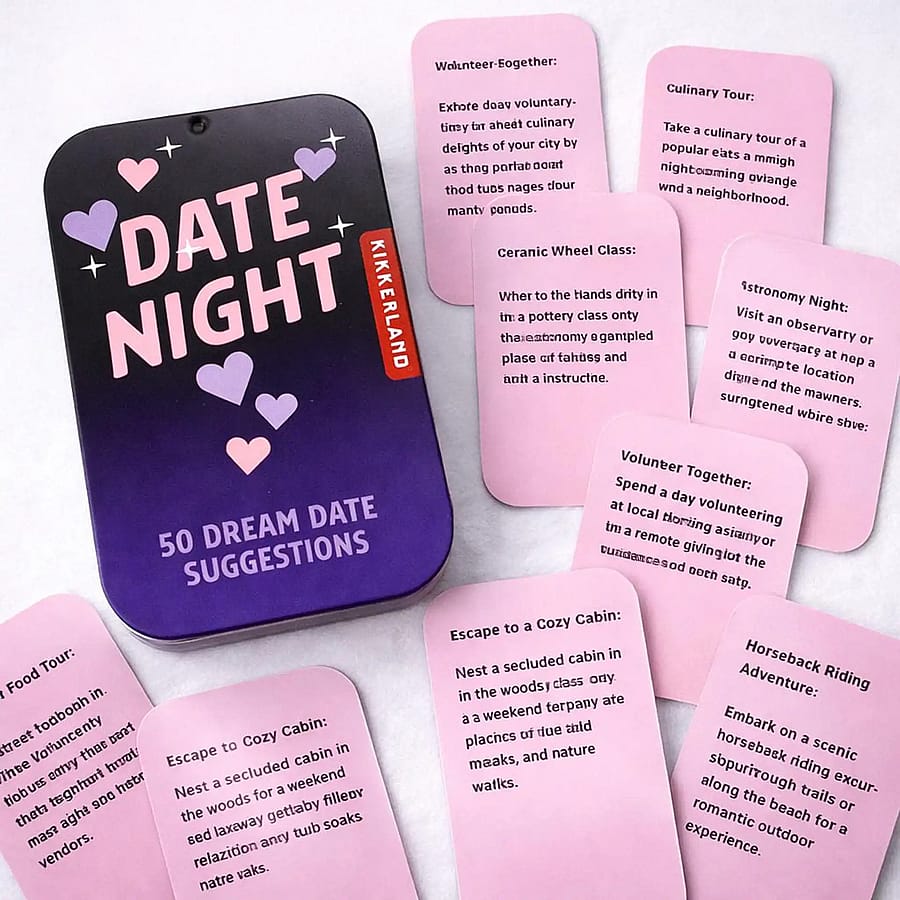 Contains 50 creatively designed cards with unique date night ideas for couples. #vday26