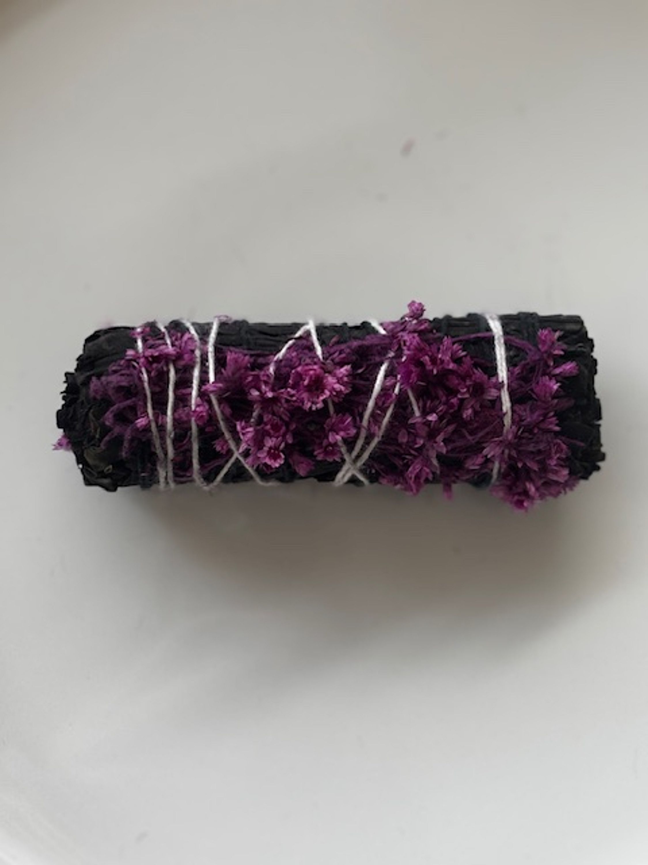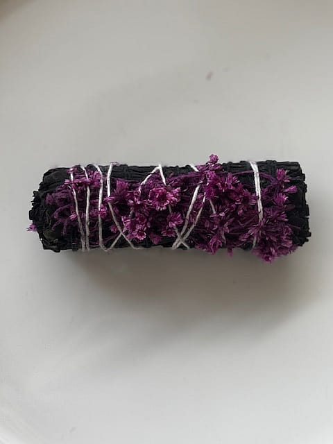 Burn this Blossom Sage Stick and cleanse your space. This cleansing sage bundle is wrapped with vibrant dried blossoms, bringing fresh, uplifting energy to your space. Perfect for removing stagnant energy and inviting in beauty, harmony and renewal.