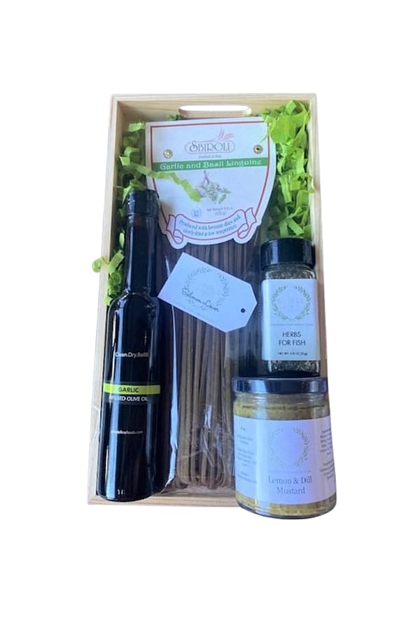 Not just for Salmon, dress up your filet with a drizzle of Garlic Olive Oil and our Herbs for Fish. A "schmear" of Lemon and Dill mustard before baking keeps your fish moist and flavorful. Add some pasta and you've got a meal!