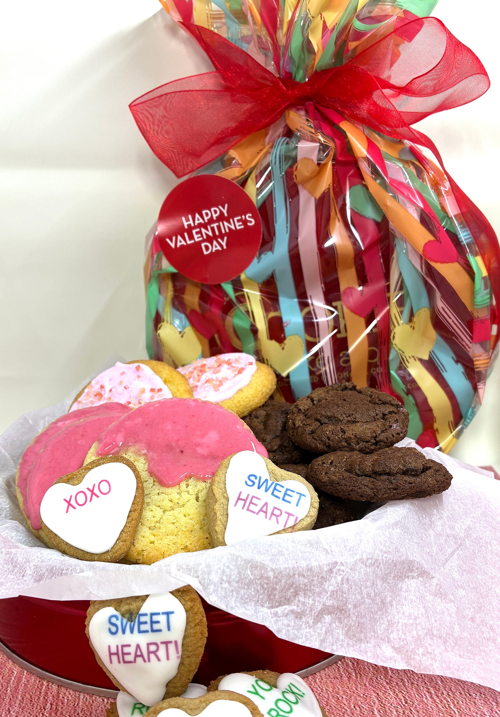 Over 20 festive cookies wrapped in Valentine's Day wrap. A perfect sweet treat for your special Valentine! Baked to Order!
