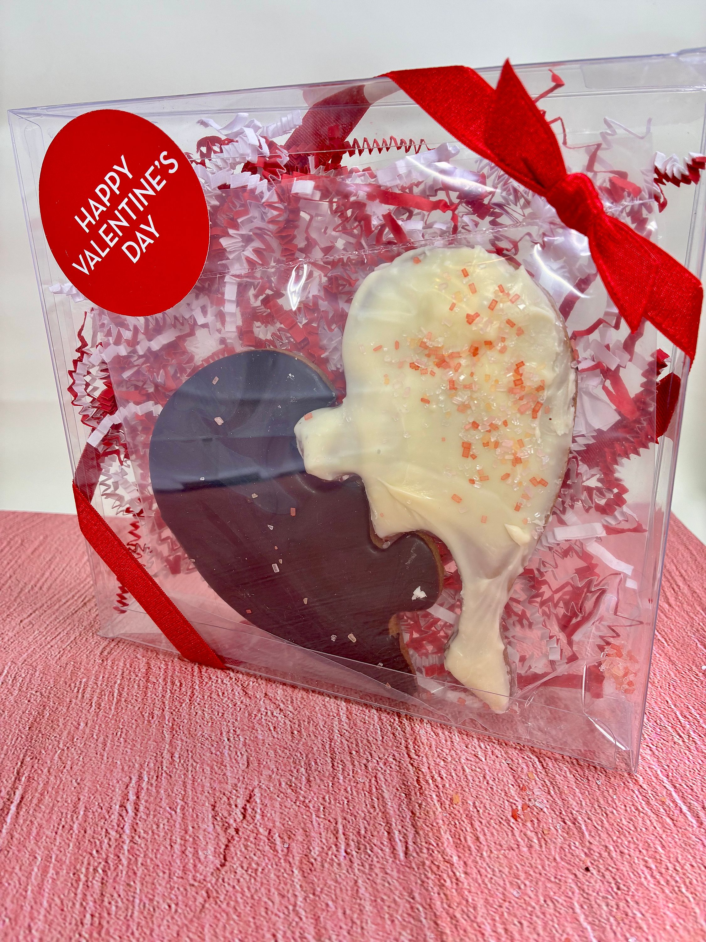 What a fun and unique gift for your Valentine. A Black and white Chocolate Puzzle cookie! Two hearts are one! All wrapped up and ready to go!